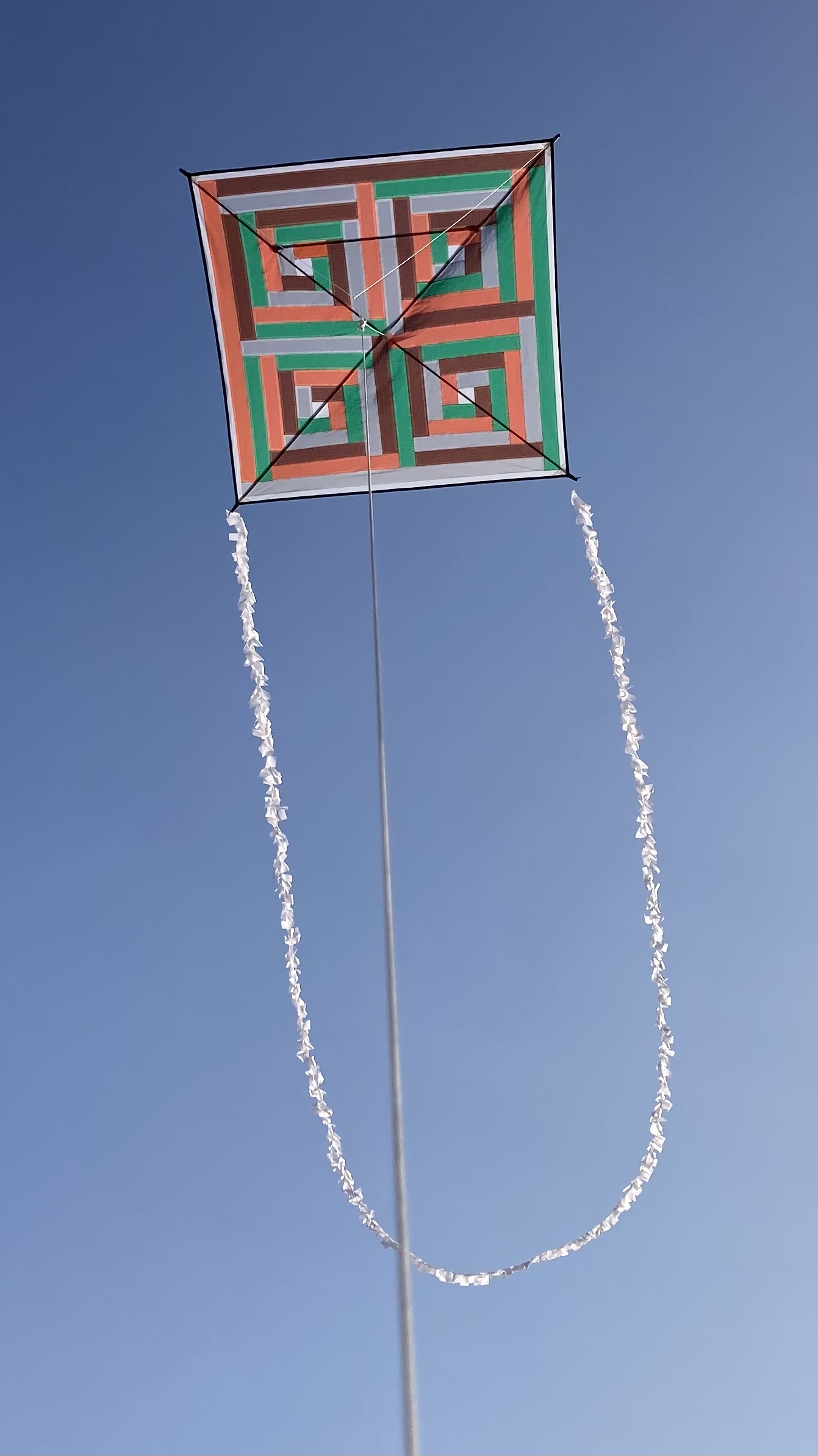 Das Design stammt von Max Bill, mit veränderten Farben. Er braucht sehr wenig Wind.
