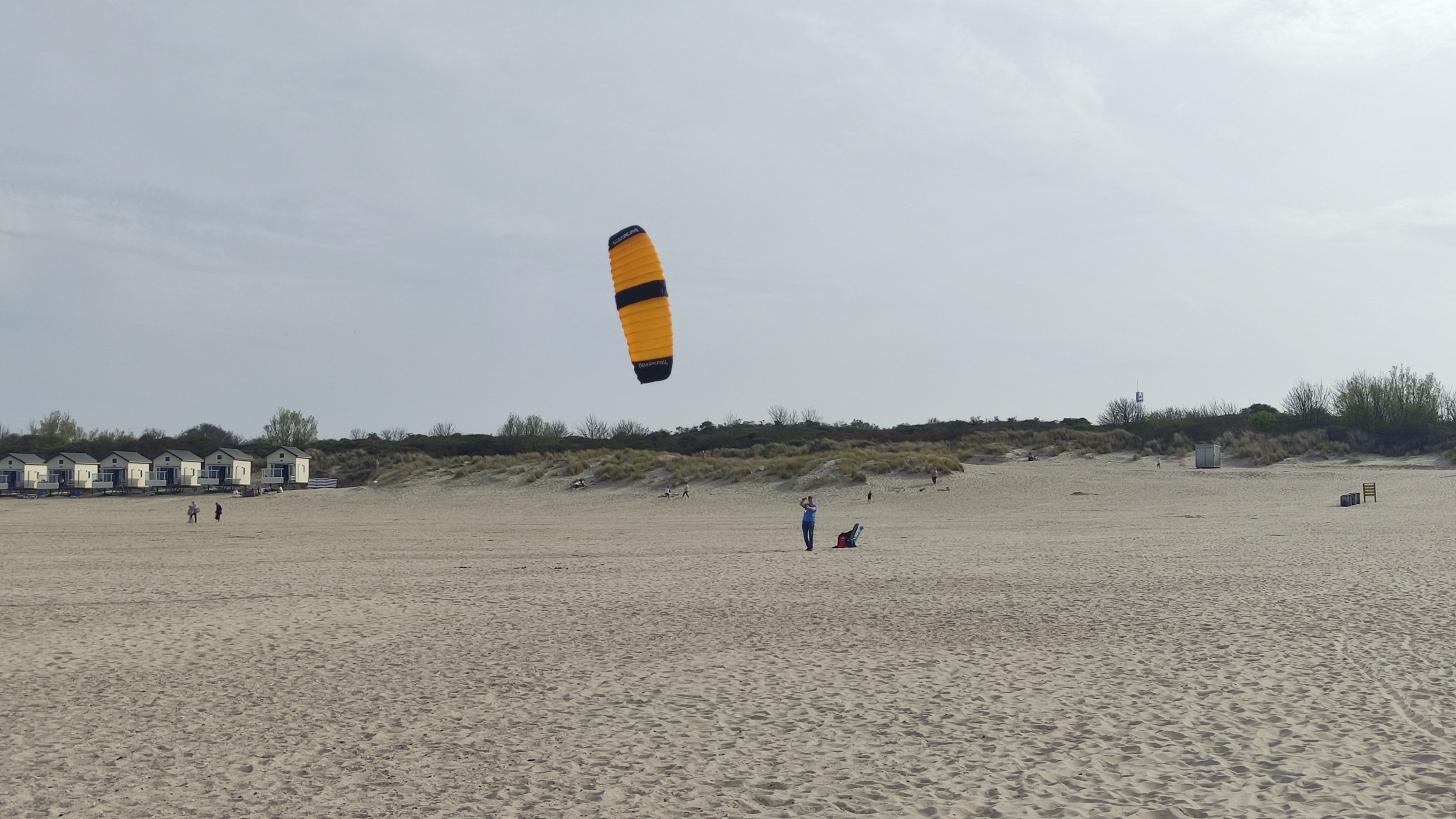 Eine Quadrifoil Competition XM serie in farbe Mango und schwarz, etwa 3.6 m2 von user mensch aus dem jahre um 1998. Geflogen in april 2026 in Vrouwenpolder, Niederlande.