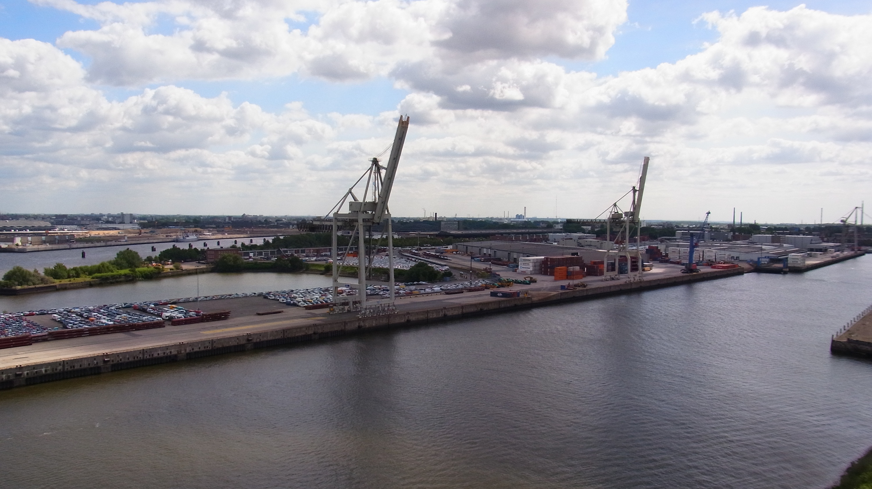 Auf dieser Fläche, wo die 3 Kräne stehen ( 2 größere und 1 kleiner ), wird 2024 die Olympiade statt finden, wenn Hamburg den Zuschlag bekommen wird.