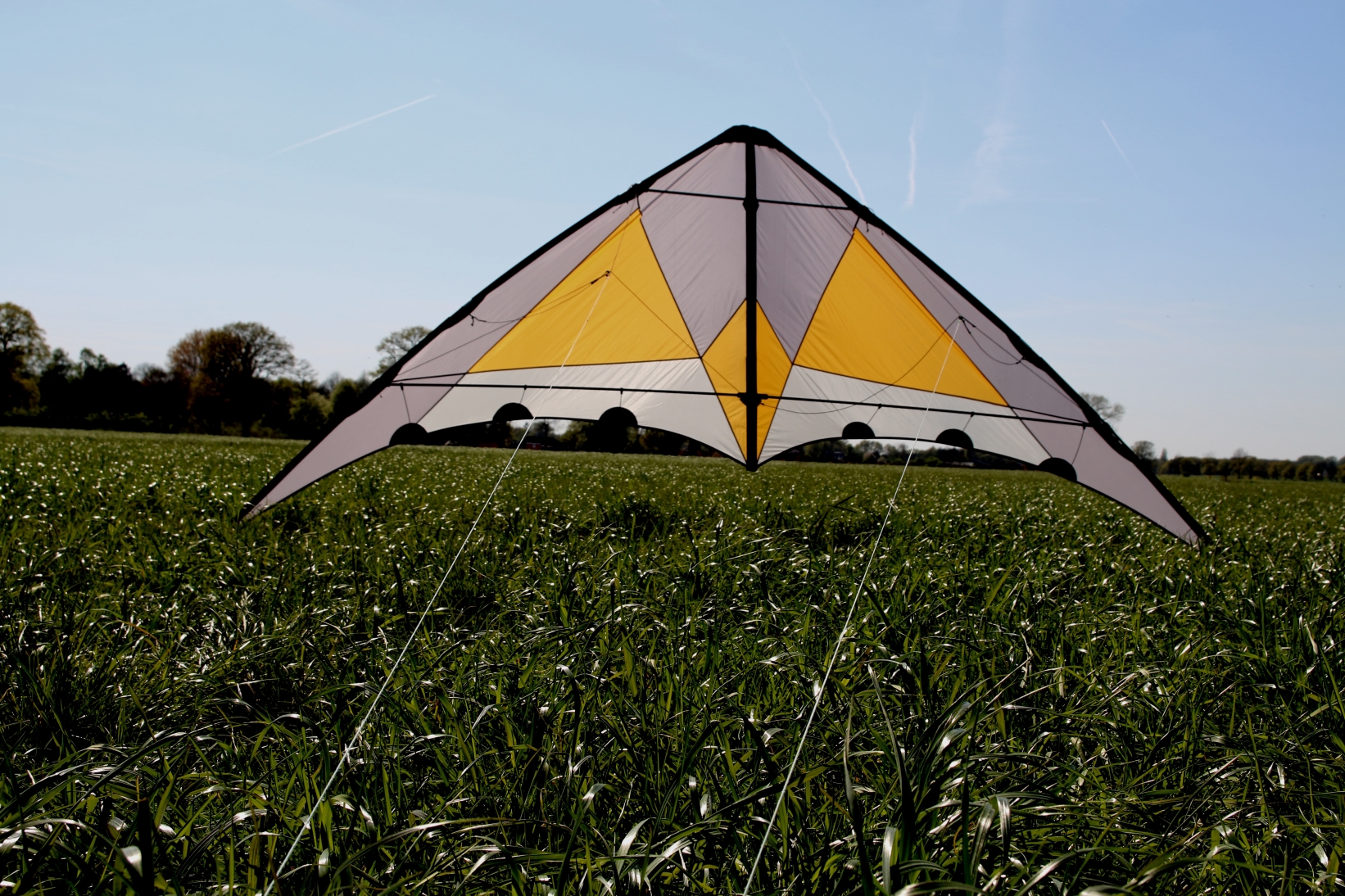 Sehr leicht zu lenken große Drache mit 4.5 Spannweite. Dreht schnell und hat viel Power. Kann liften bei steile Einstellung. Fliegt schon unter 5 Knoten.