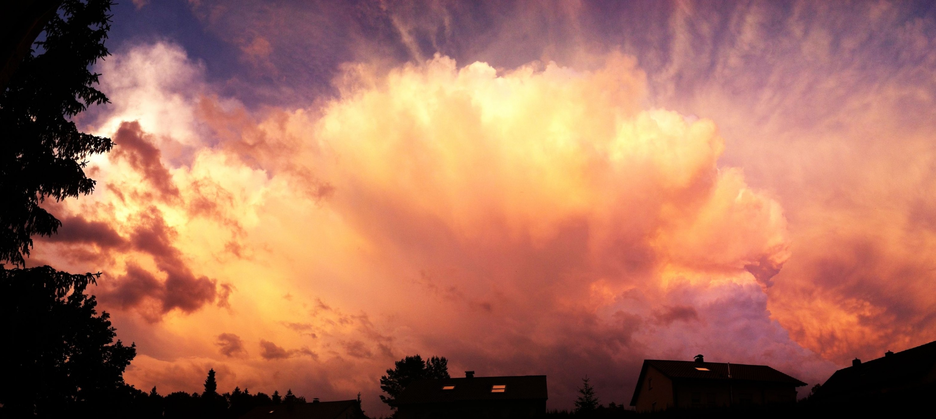 Nein, das sind auch Wolken. Da gibts nichts als Wald in dieser Richtung. Wurden von der Sonne irgenwie anders angestrahlt. Als wäre da eine andere Wolke im Weg gewesen.In dieser anderen Aufnahme sieht man es besser.