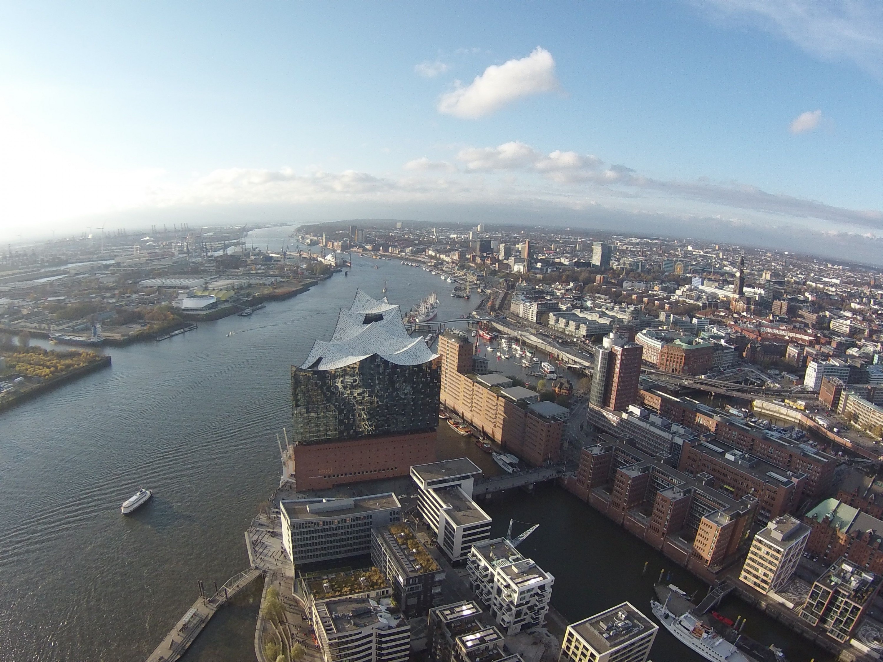Allerdings. Aber wer hätte das gedacht, das Dach der Elbphilharmonie ist weiß! Aufnahme aus ca. 200m Höhe. Um Drachenflughöhe zu sparen habe ich die Kamera direkt am Drachen (unten am Kielstab des Invaders) befestigt.
