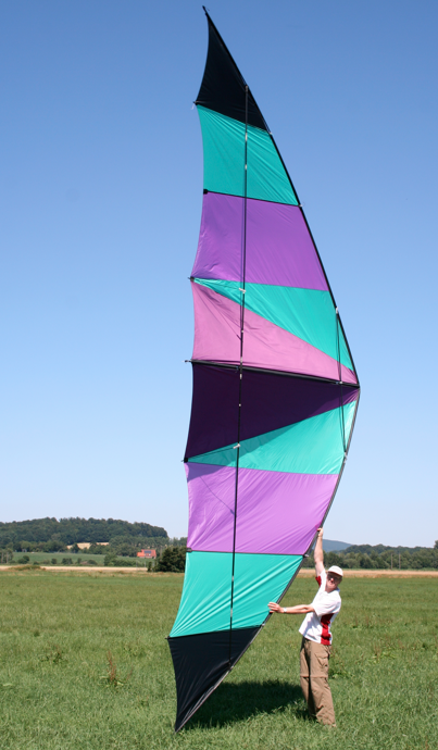 Ja, das ist der größte jemals gebaute S-Kite mit einer Spannweite von acht Metern.