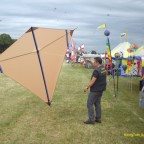 Werner Köhler, Inhaber des Drachenfachgeschäfts "Windvogel" in Hamm, bei der Waageeinstellung seines 3-Meter-Eddys. Das Bild enstand während des 22. Sparkassen-Drachenfestes in Lünen im Oktober 2011.