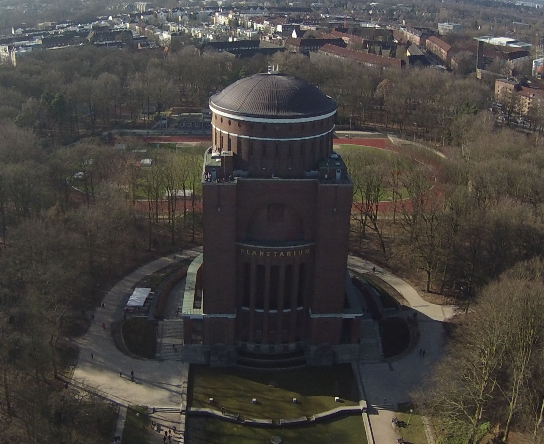 Das Planetarium in Hamburg in der Abendsonne. Da man nur von Osten her an das Gebäude heran kommt waren die Lichtbedingungen am späten Nachmittag nicht optimal. Nächster Versuch startet an einem Vormittag.