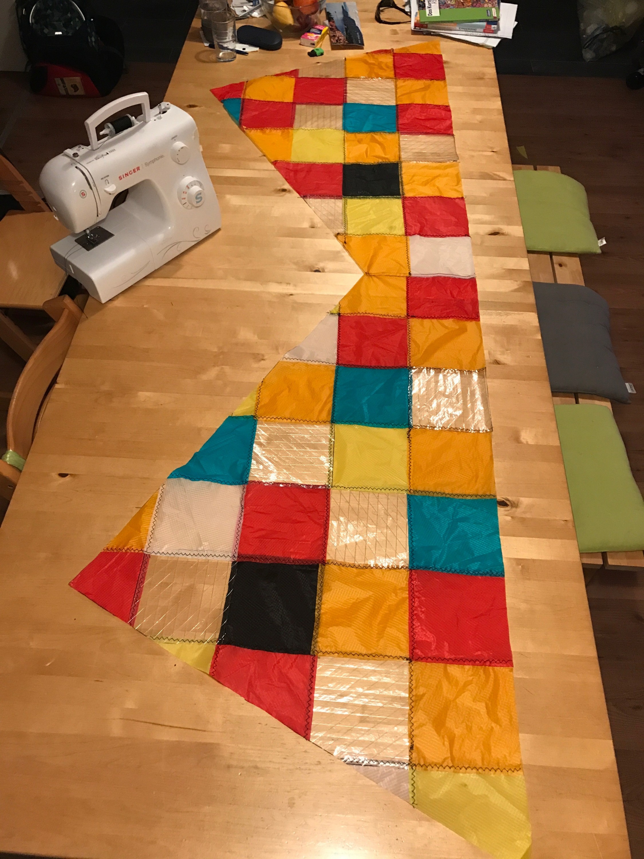 Die beiden Hälften sind vernäht. Morgen wird er fertig, denke ich