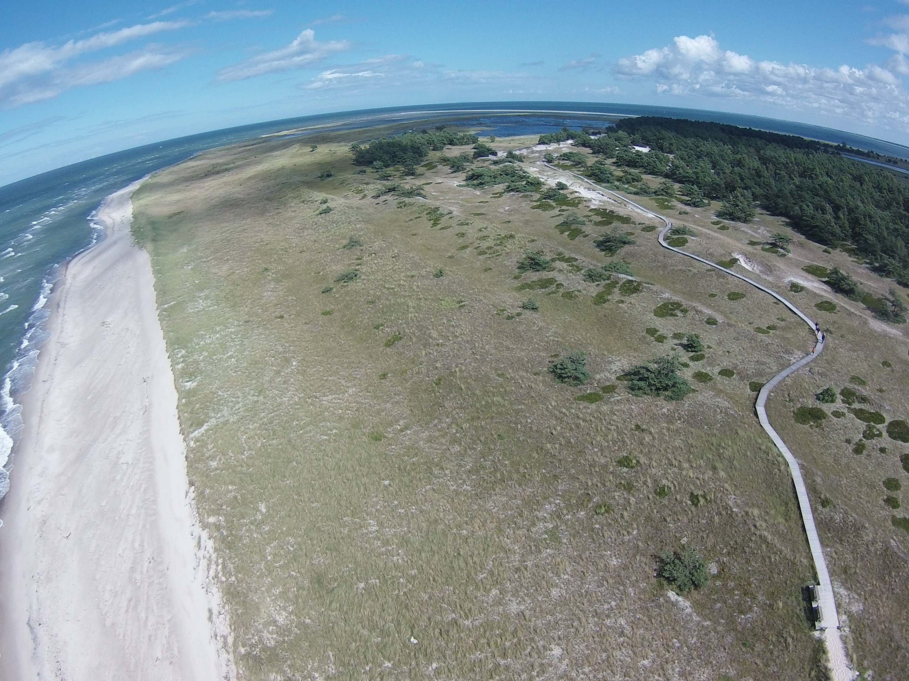 Der Wanderweg am Darßer Ort aus der Luft. Nur mit Minimalausrüstung komfortabel erreichbar, da man den Ort erst nach über 1 Stunde Fußmarsch erreichen kann.