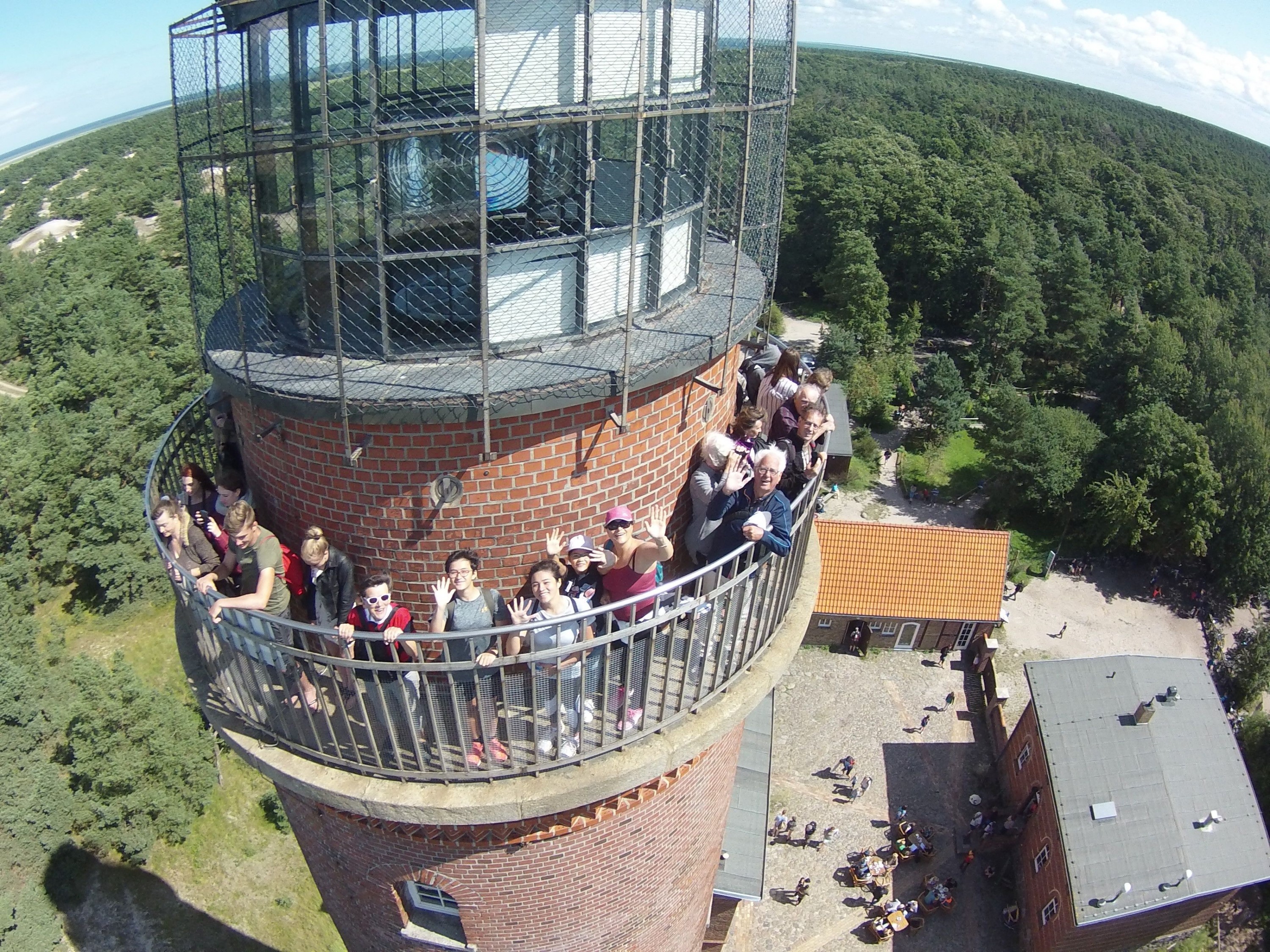 Mitglieder meiner Familie winken meiner Winddrohne vom Leuchtturm "Darßer Ort" aus zu.