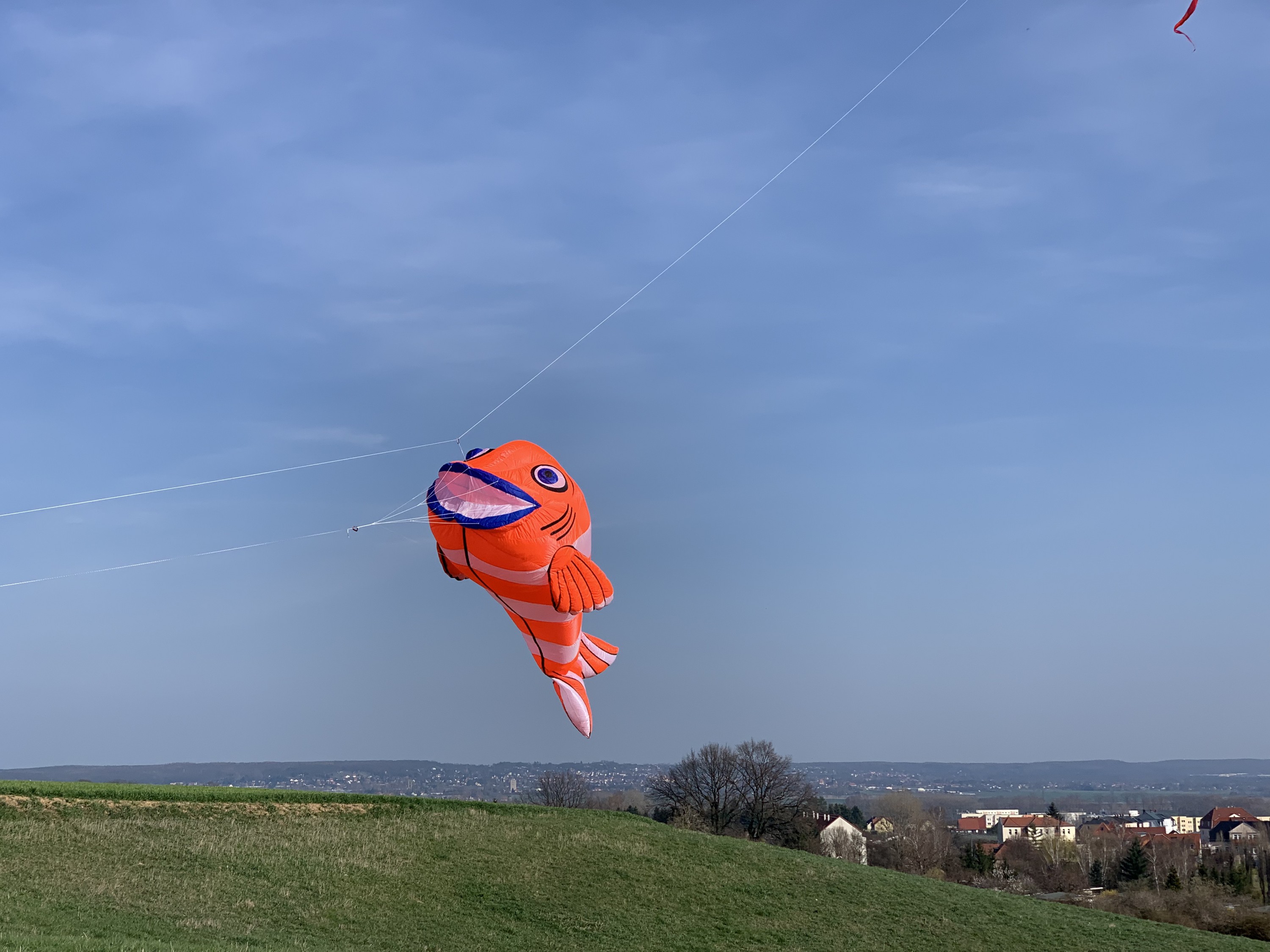 Es ist ein wunderschöner Leinenschmuck.Sehr gut verarbeitet und durchdacht.Die Luft kann durch das Maul rein aber nicht mehr raus.Zum Einpacken hat man auf dem Rücken einen Reißverschluss über den die Luft dann entweichen kann. Er hat einem 4,5m Leinenschmuck angemessen Zug. Ich hatte Ihn an dem Tag mit einem XXL-F-Tail dran.Der hatte allerdings bei einer Windstärke von 2-3Bft etwas zu kämpfen.Also besser einen etwas grösseren Pilot verwenden. Der GF hatte dann überhaupt keine Probleme den zu heben.Aber der Hebt ja auch meinen 26m Octopus.Das Flugbild ist einem Fisch angepasst.