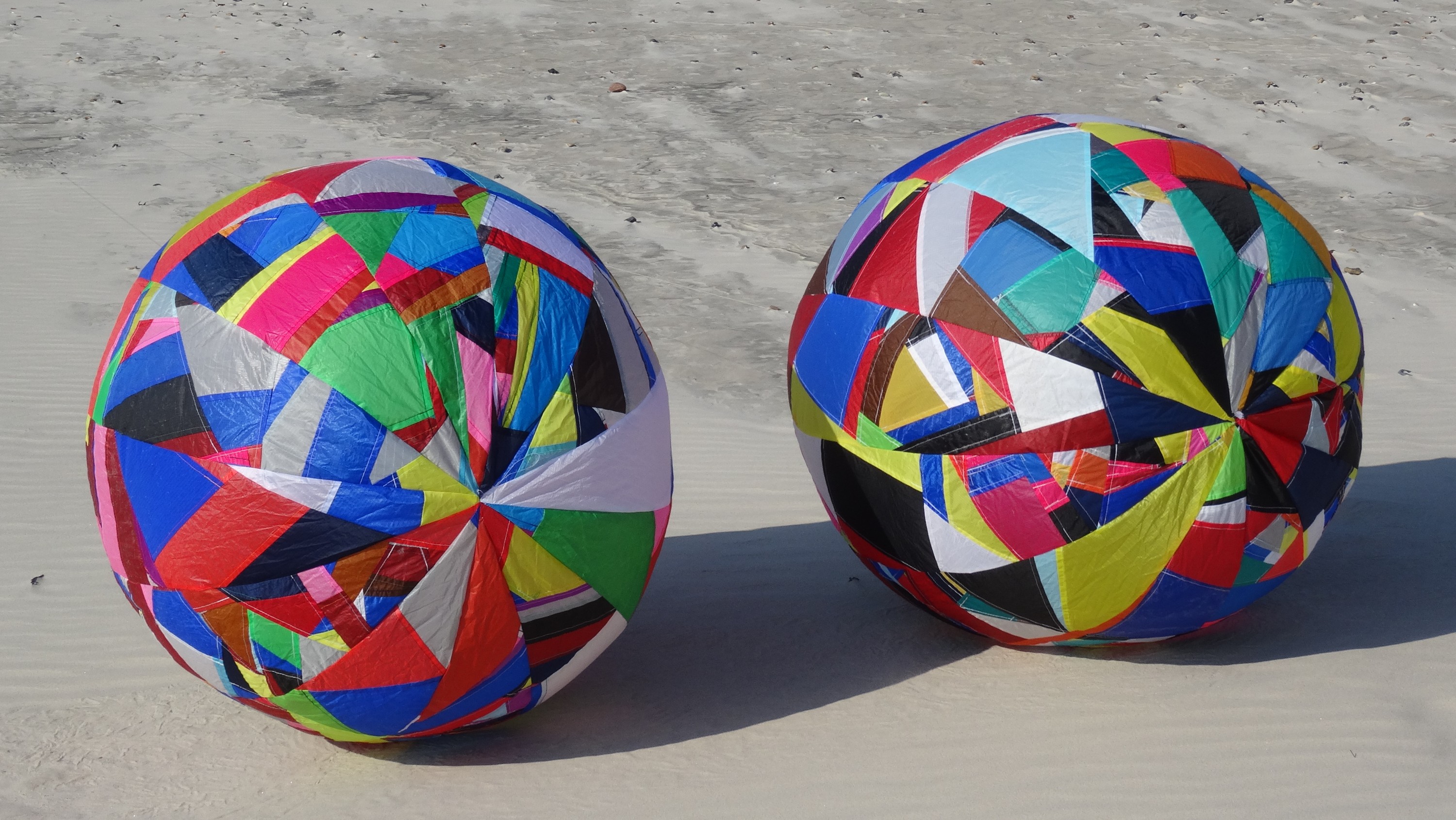 Hallo deb10042 Danke schön... und ja... die hängen an einer Schnur, kann man an dem Linken Hüpfball so gerade erkennen, das mit dem fliegen müsste ich mal ausprobieren. Wenn du ein paar bewegte Bilder sehen willst, dann such mal bei YT nach " Windfesival Blokhus 2019 " bei 1.00 Min + 1.30 Min findest du die beiden...