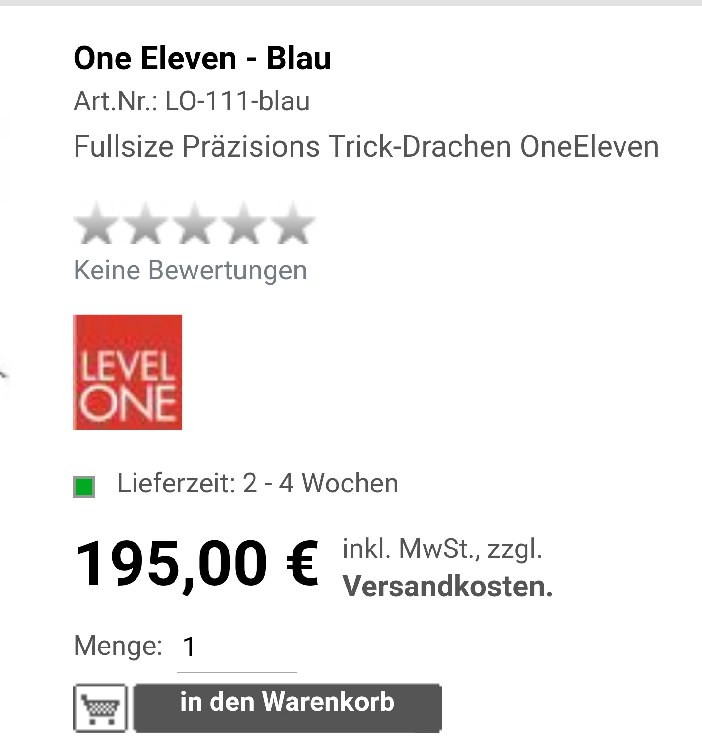 Er ist ein Fullsizer (Leitkanten-/uQs-länge 165cm) mit günstigem 6mm CFK-Gestänge, hochwertigen Verbindern, leichtem Segeltuch und einer sehr sauberen Verarbeitung, wie man es von Level One gewohnt ist.