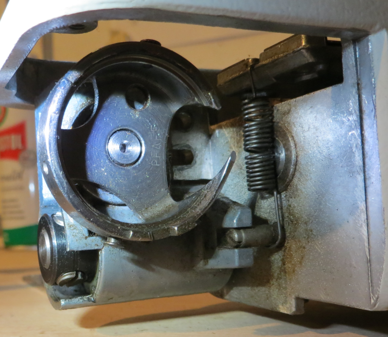 und die einzige Ölstelle ist die Gleitfläche im Greifer. die bekommt etwa alle 20 bis 30 Nähstunden 1 (i.W. : einen) Tropfen Nähmaschinenöl