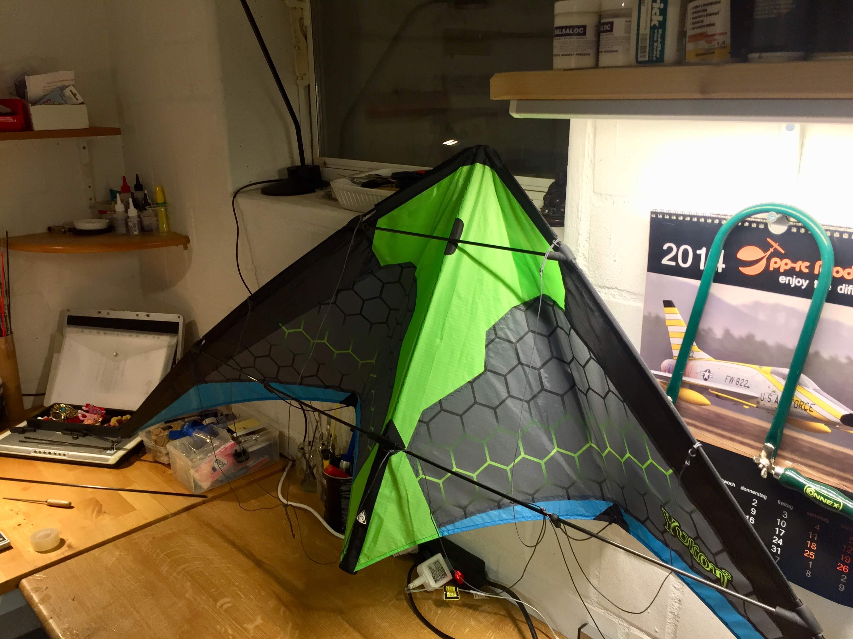 Insgesamt stelle ich mir vor, dass mein Versuchsdrachen vielleicht ein wenig "knackiger" und auch trickreicher zu fliegen sein wird. Eine Rückkehr zum Originalzustand is ja jederzeit unproblematisch möglich, sollte ich was verbastelt haben. ![]()