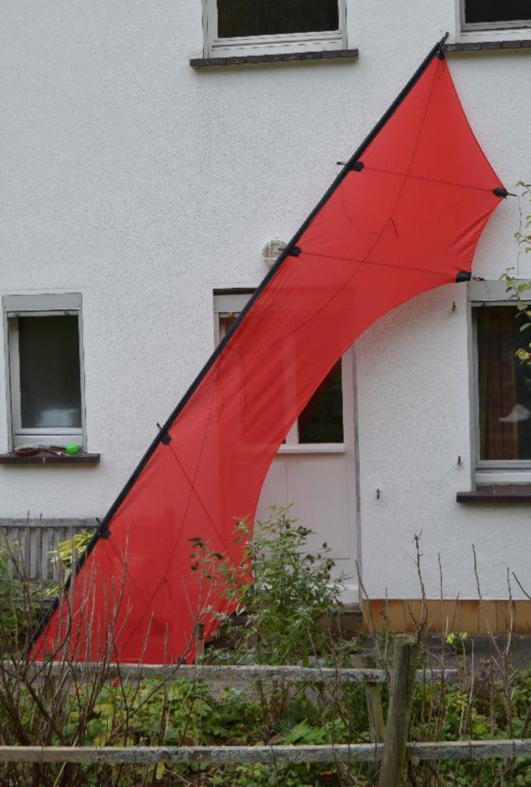 Zum Drachen habe ich alles am Anfang geschrieben. Er hat nur 5 m, ich war feige, heute würde ich 3 x 2 m Stangen nehmen. Es sind 16mm/14mm Pulwinding Stäbe,