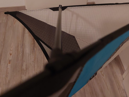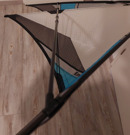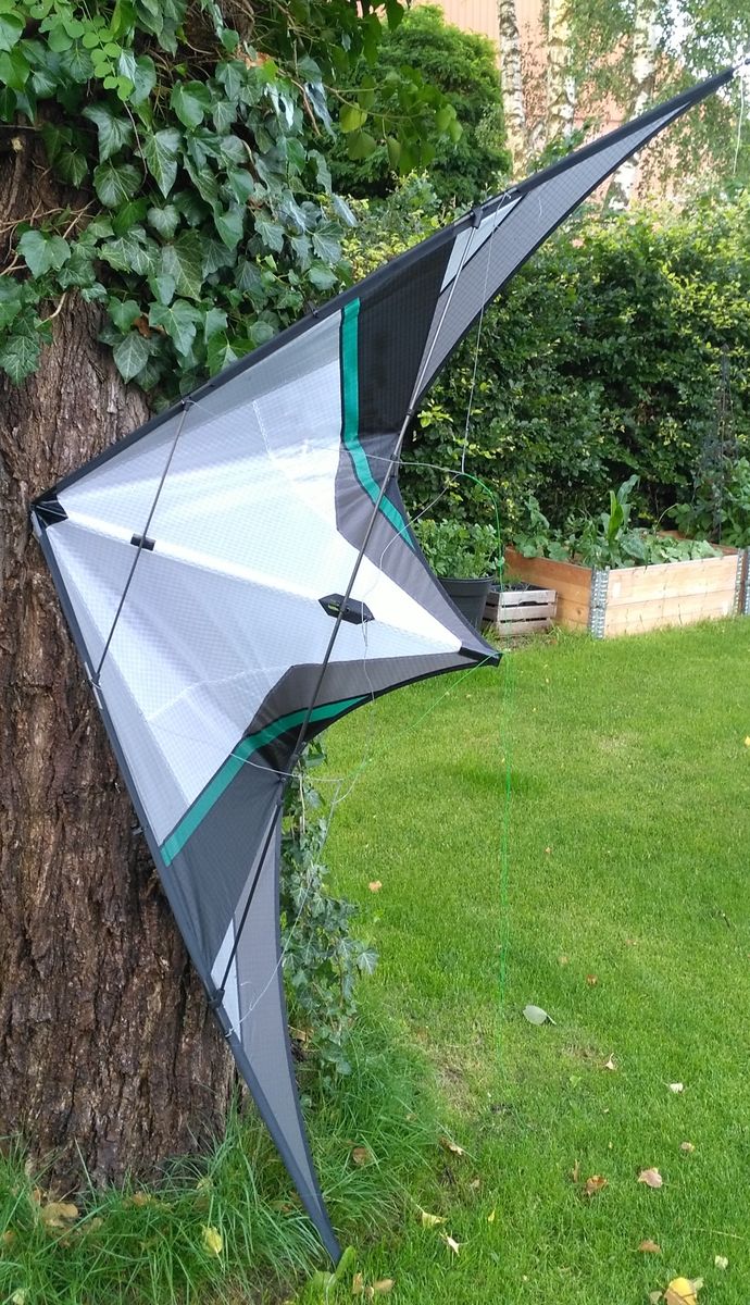 Was mir als erstes bei dem EOL auf den Fotos auffällt das ist der Faltenwurf im Segel. Er ist untypisch. Die Falte von der Nase zu den Standoffs deutet auf eine zu hohe Spannung in im Segel hin. Was auch fehlt: Jedes EOL-Segel hat im Bereich ca. 5 neben der Leitkante im mittleren Teil eine Falten parallel zur Leitkante. Das ist bei den Kites von Jens Lück und Thorsten(MP3) an den Farbstreifen gut zu erkennen. Das Segel ist nämlich in Ruhe hier ohne Spannung und formt sich erst im Flug aus.…