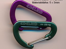 Dazu noch passende Last-Karabiner. Ich habe schon einige von Elliot und bin zufrieden mit denen und so sind noch mal 3 Stück Elliot Screw Orange in den Warenkorb gewandert. Die sind schön entgratet, nirgends scharfe Kanten und bis 25kn in Längsrichtung belastbar. Das reicht mir dicke.