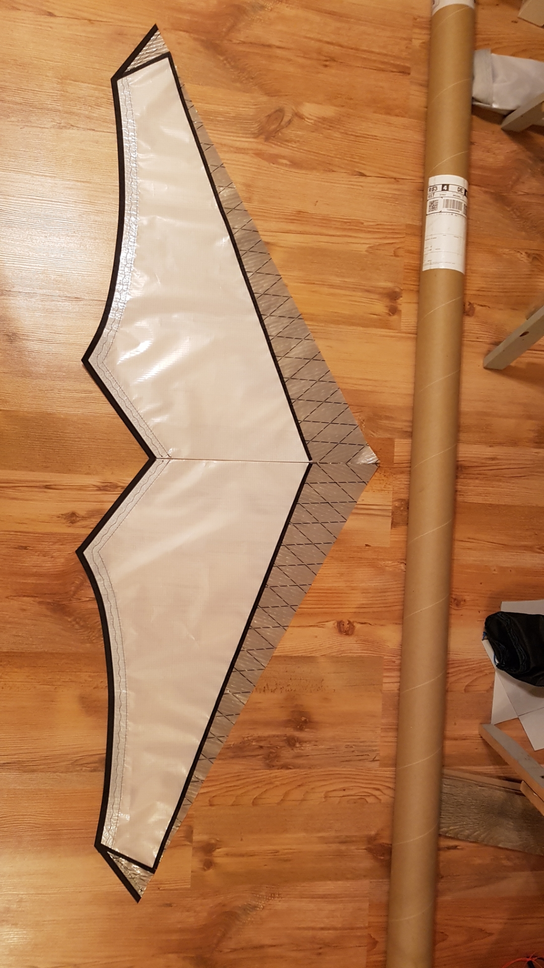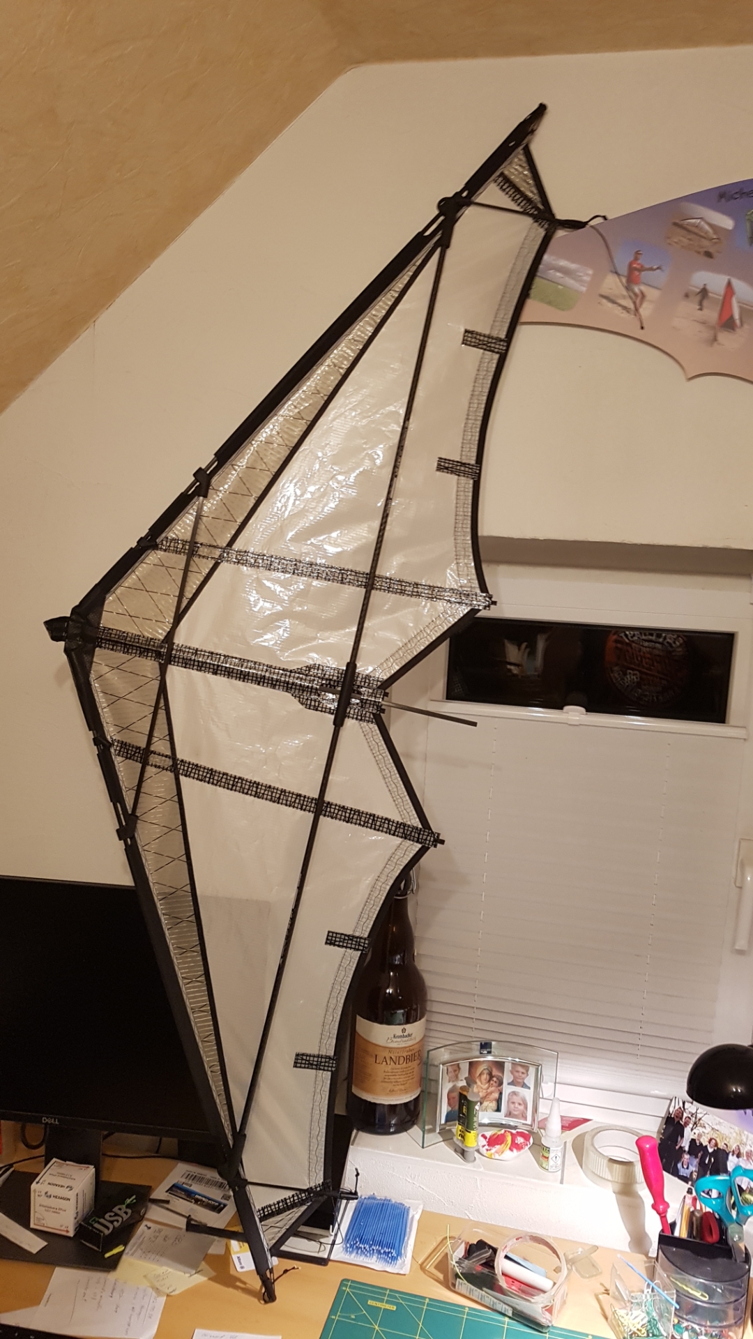 und von Mylar (windundurchlässigkeit, glatte Oberfläche) und ist dabei nicht so empfindlich wie Cuben.