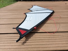 So sieht die Profilierung bei stärkster Streckung aus. Das Segel lässt sich im jeweiligen Mittelbereich noch mit Spannung eindrücken.