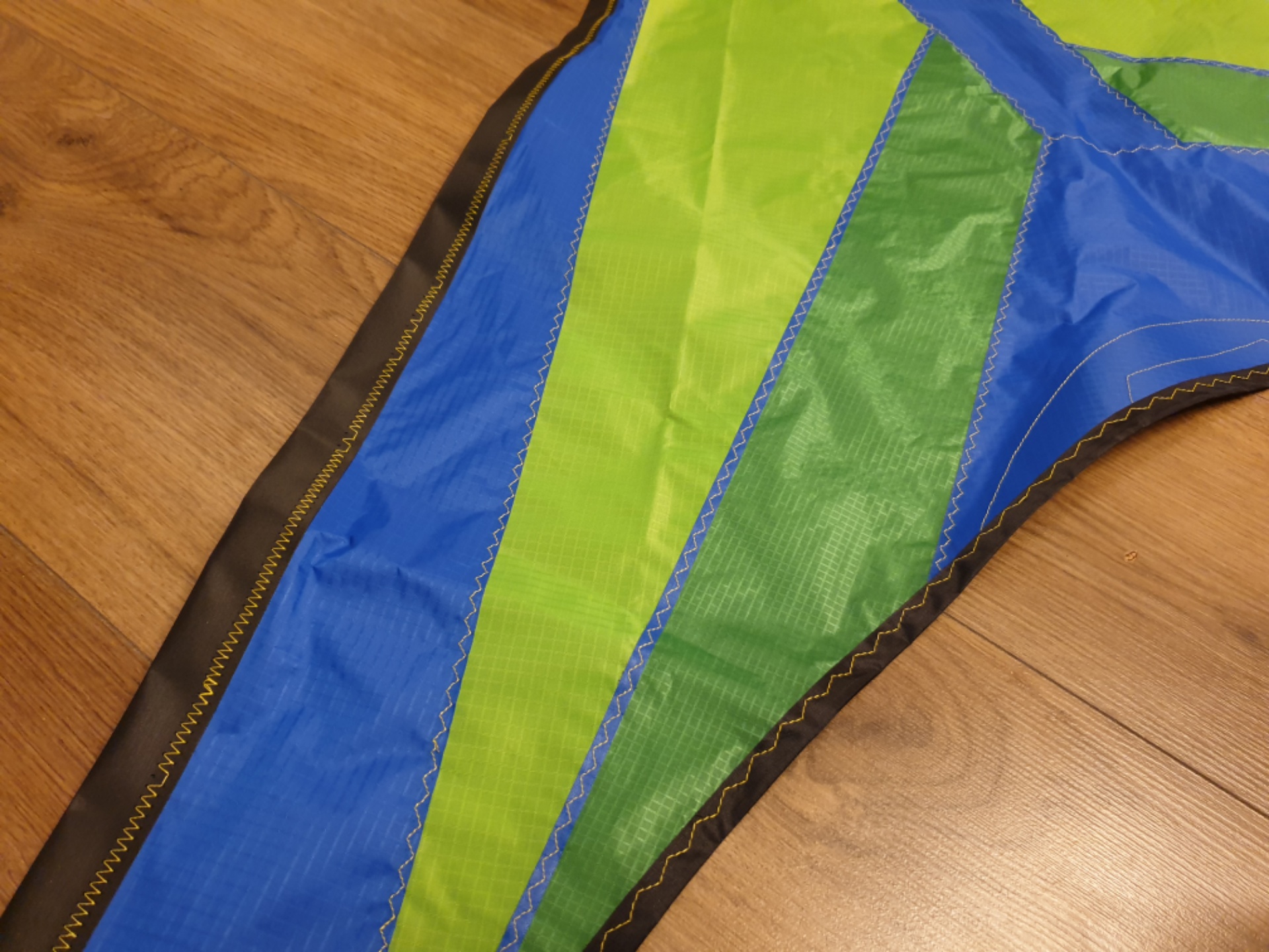6. Wenn Du mit dem Segel sonst zufrieden bist, würde ich die Naht öffnen und die Leitkante mit der Hand in die vorhandenen Löcher nachnähen (Handrad … ohne Padal). Dauert zwar 10 Minuten … aber Du hast wieder Freude am Segel.