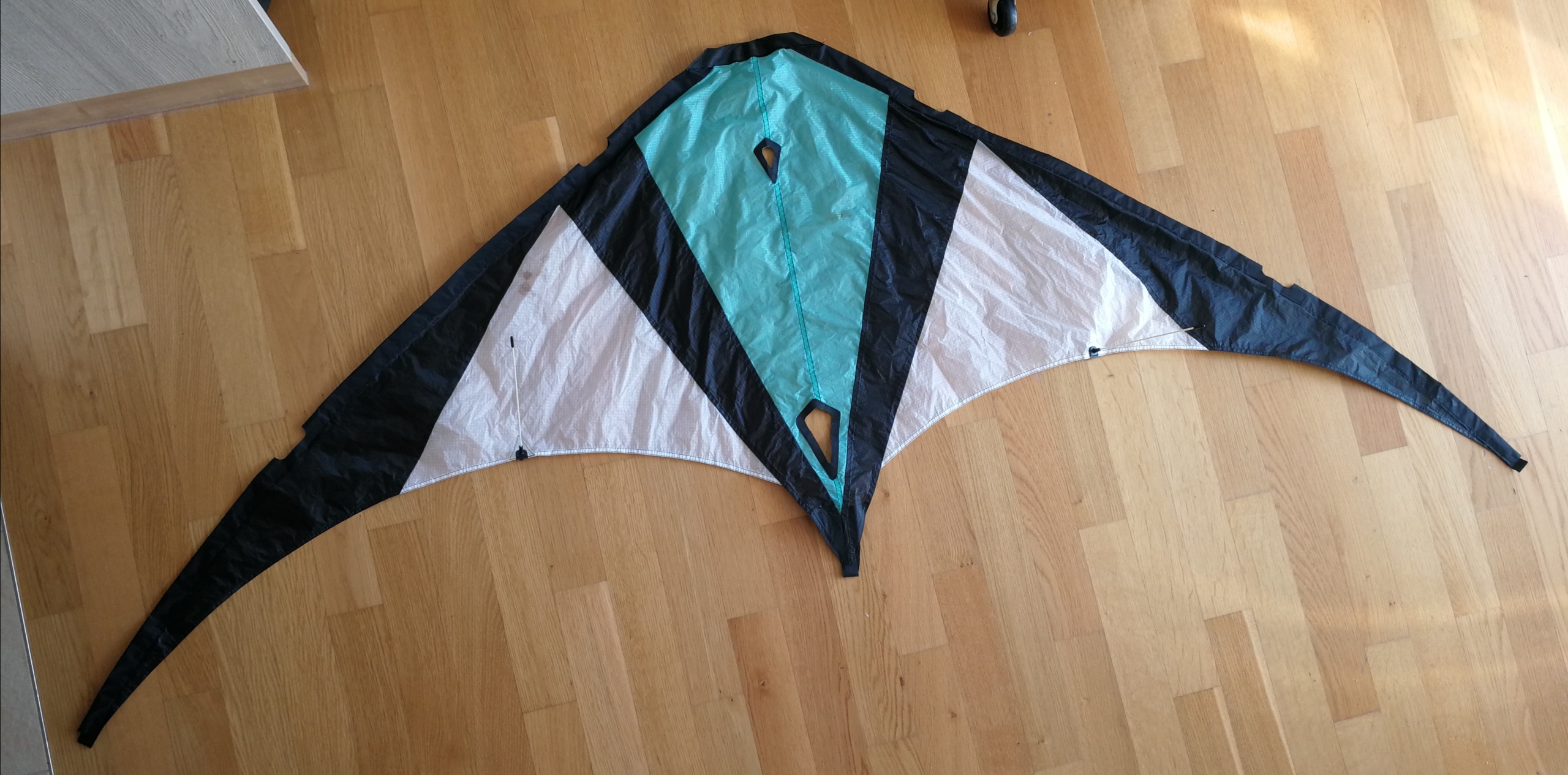 Die Maße meines Multi-Kite stehen im verlinkten Thread. Und die Größe passt, wenn mit 65cm die Kiellänge gemeint ist. Aufrecht gestellt steht der Kite auf den Stand-Offs und den Flügelspitzen, der Kiel hat eine gute Handbreit Luft zum Boden.
