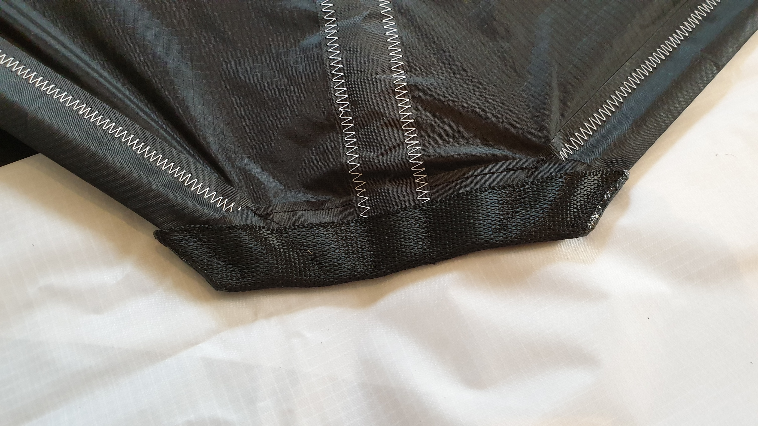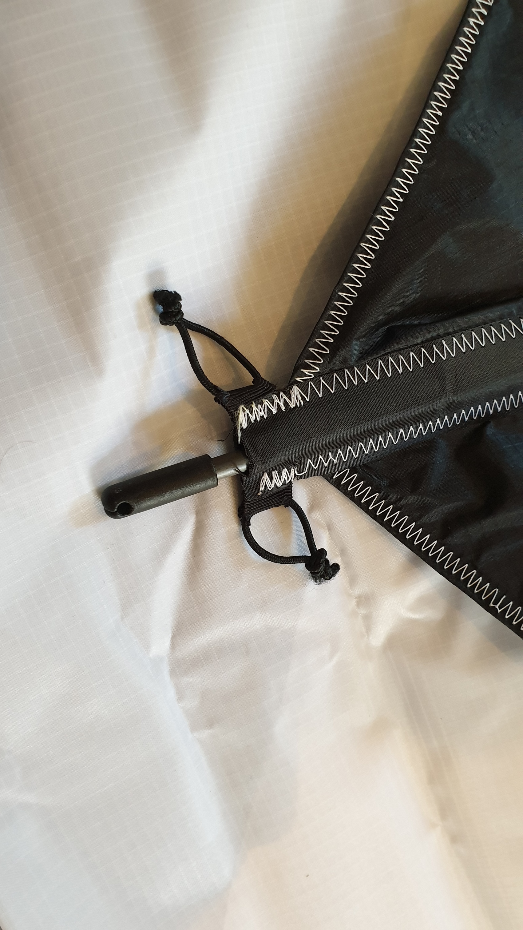 Nun habe ich die Näharbeiten fast fertig (ich war bis jetzt zu faul das Gurtband an die Nase zu nähen und die Mittelnaht bzw die Aufnahme für die Kielstange werde ich nochmal ändern) und passe das Gestänge an.