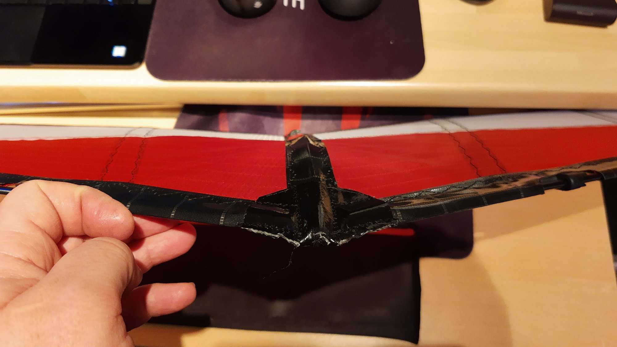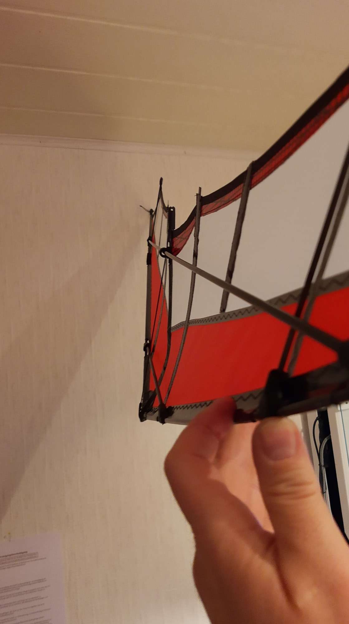 Ich habe jetzt mal die uQS gekürzt, da mir aufgefallen ist, dass die uQS nicht so tief in die verwendeten kleinen Invento-HQ Verbinder reingeht. Macht pro Verbinder gut 2 mm gegenüber den APA Tiny. Das Profil ging dann an der Segellatten (Abstand Segellatten zu Spreize) von ca. 3 cm auf 4 cm. Ich werde damit etwas später nochmal probieren weil hier regnet es gerade aus Eimern!