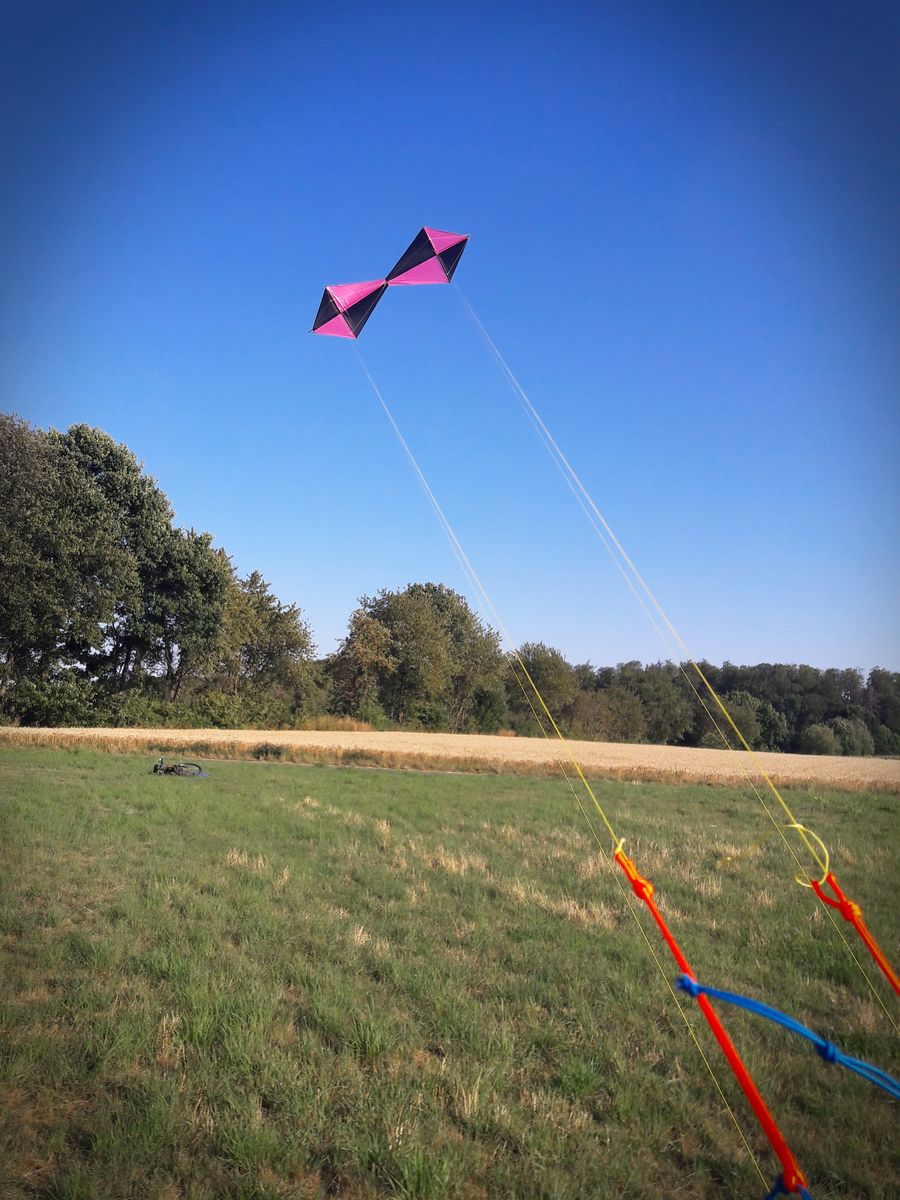 Heute erster Testflug des TwinXL bei drei bis vier Windstärken (gemessen 10 Knoten im Schnitt) an 25m-Leinen. Was auffällt: er fliegt sehr ausgeprägt entlang der Mittelachse vertikal wie horizontal (sliden). In der Praxis hat sich allerdings der größere Abstand der Anknüpfpunkte als ruhiger erwiesen. Er ist dennoch deutlich unruhiger als ein Rev, was eventuell an den waagerecht enger (als beim Rev) zusammenliegenden Anknüpfpunkten liegt. Überraschend schwer gefallen ist mir das Propellern um den Mittelpunkt.