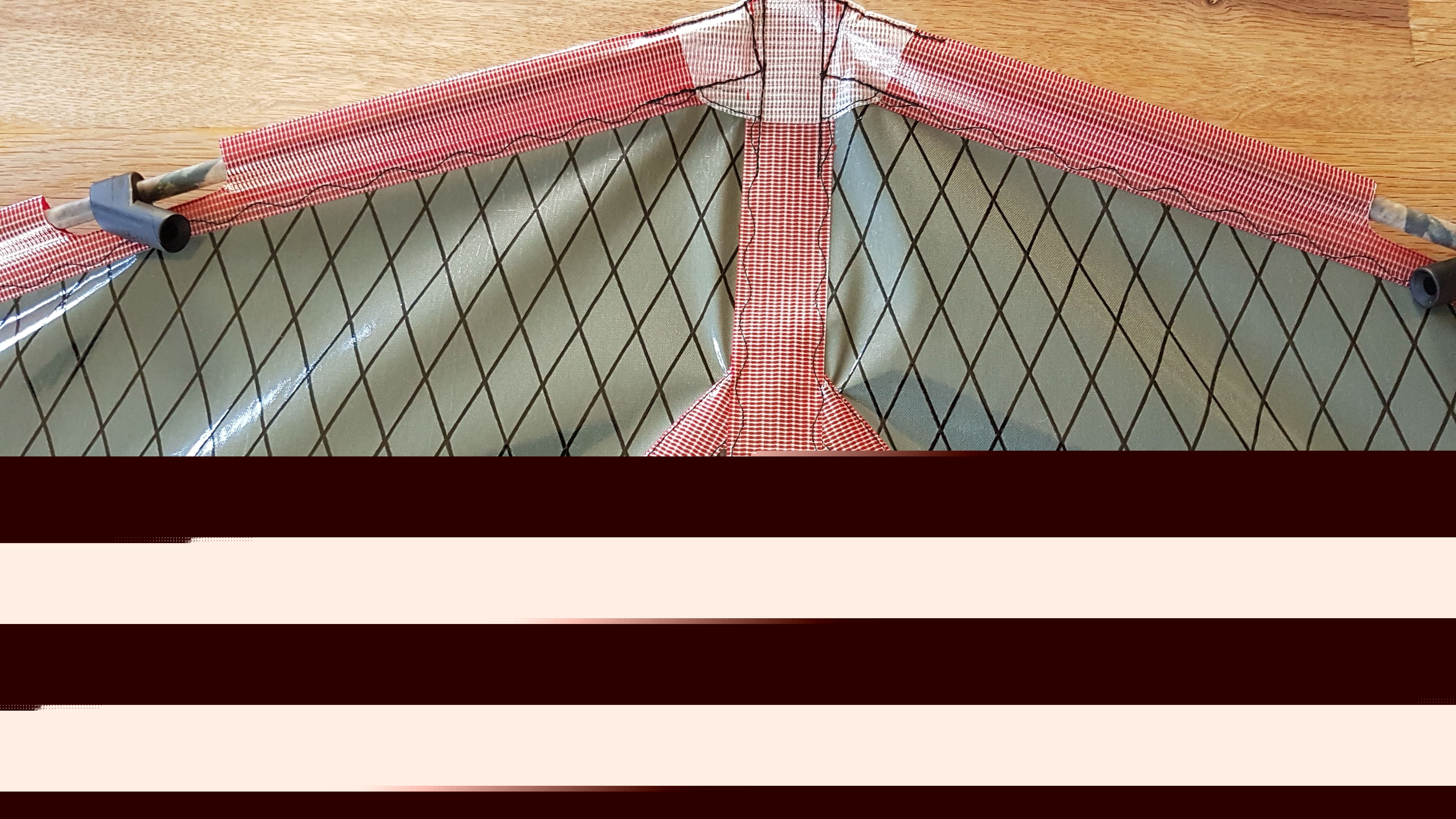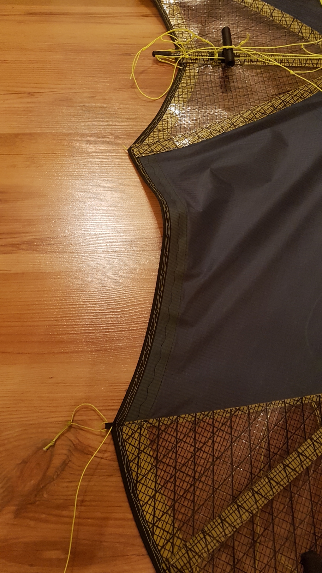 Gebaut hab ich den Vogel aus X-Pack von Extremtextiel und am Kiel mit 170 Gramm Mylar . Die Verstärkungen und LK-Taschen sind aus PG45 das ich mit Airbrush von hinten lackiert habe.