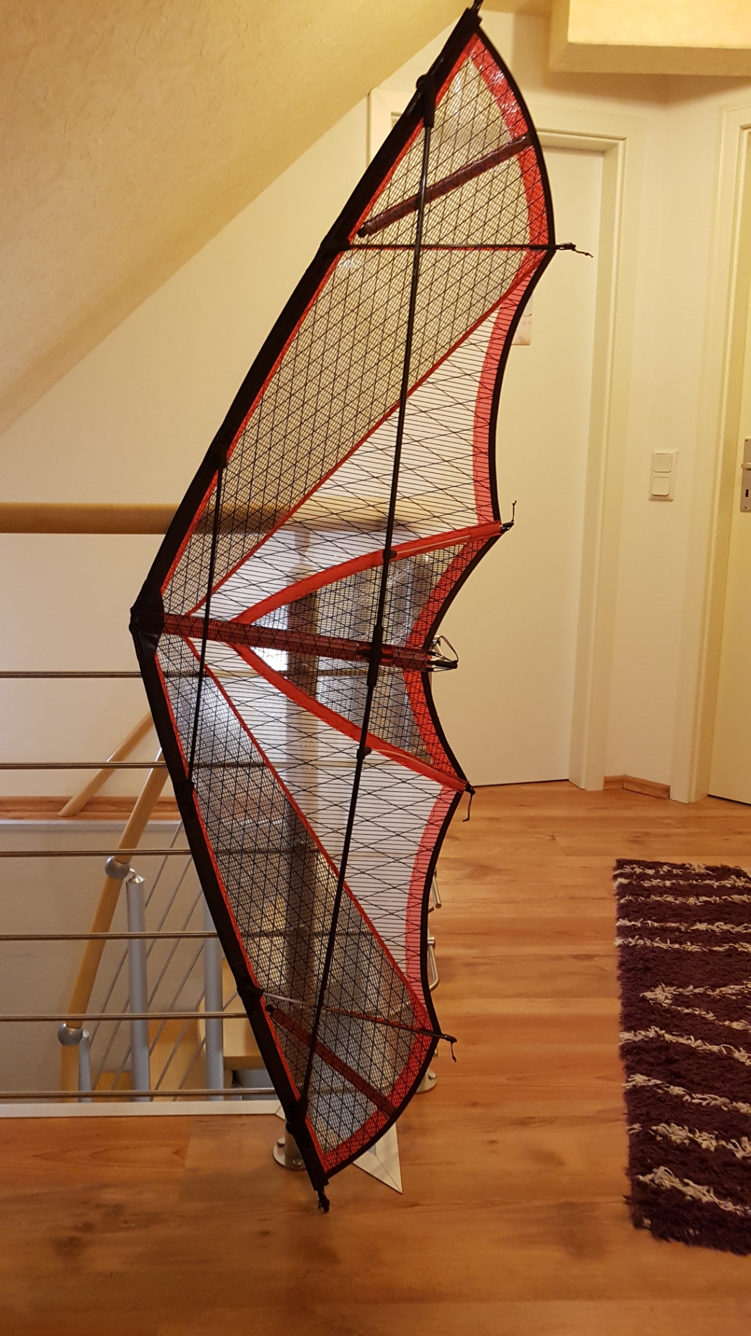 Wind wäre genug vorhanden zum Testen .Eigentlich hat er hier 128 cm Spannweite . Die optimale Länge der UQS herauszufinden wird wohl etwas Arbeit werden . Vielleicht wird es final doch ein 130er