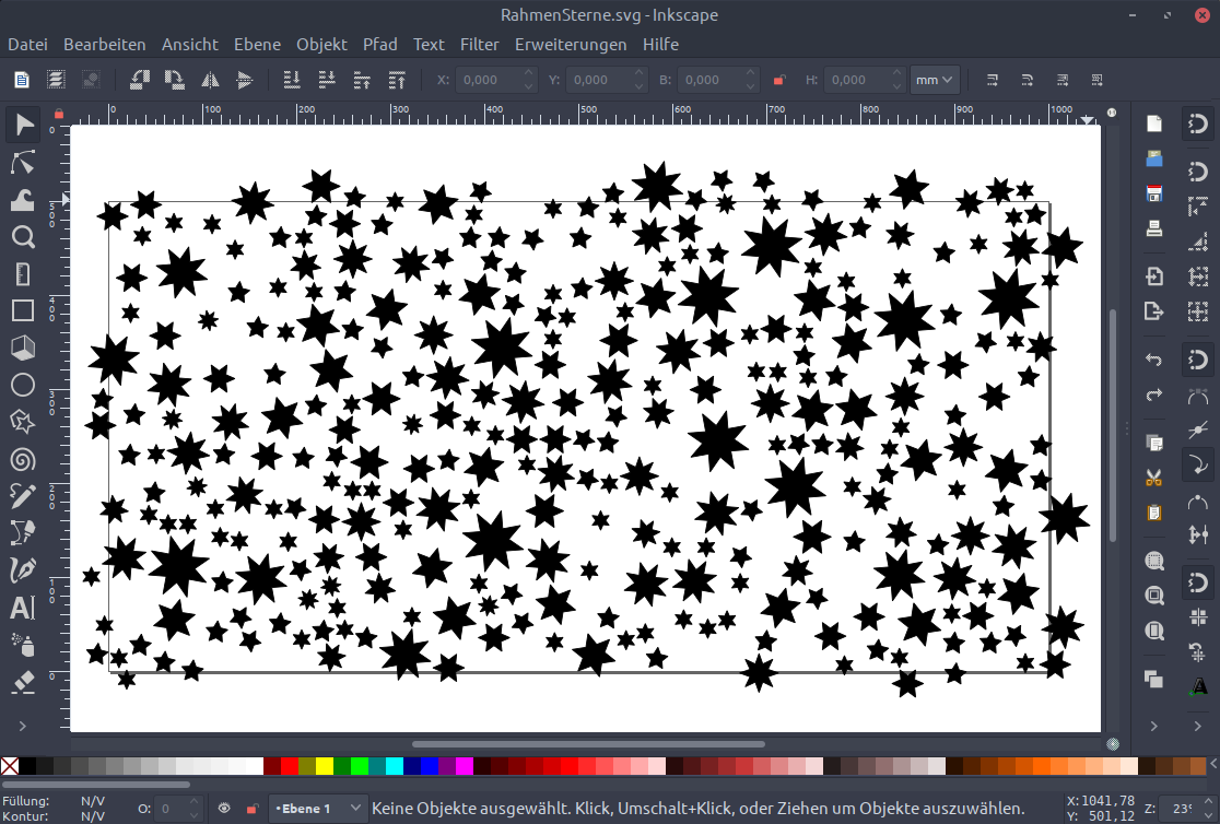 Das ganze habe ich dann in Inkscape für den Druck angeordnet. Das gibt eine Zeichnung von 1m Breite und fast 3m länge! ![]()