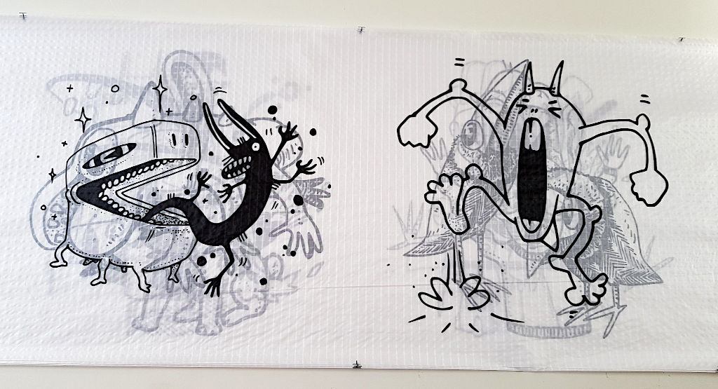 Erstmal zur Idee: Ich folge schon länger Devin Montes auf seinem YouTube-Channel Make Anything. Auf Instagram zeigt er unter dem Titel "Rejected Animals" kleine Skizzen (Doodles), die mir richtig gut gefallen. Ich finde die einfach nett, und oft bringen sie mich zum Schmunzeln. Kurz: Liebenswerte kleine Kunstwerke, die ich gern auf Drachen sehen würde. Also habe ich bei ihm angefragt, und er hat mir die Erlaubnis gegeben, seine Doodles (nicht kommerziell) auf meinen Drachen zu verwenden.
