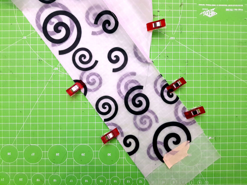 Die Kreuze sind die Schnittmarken, damit ich ohne viel Messen die Segel ausschneiden kann.