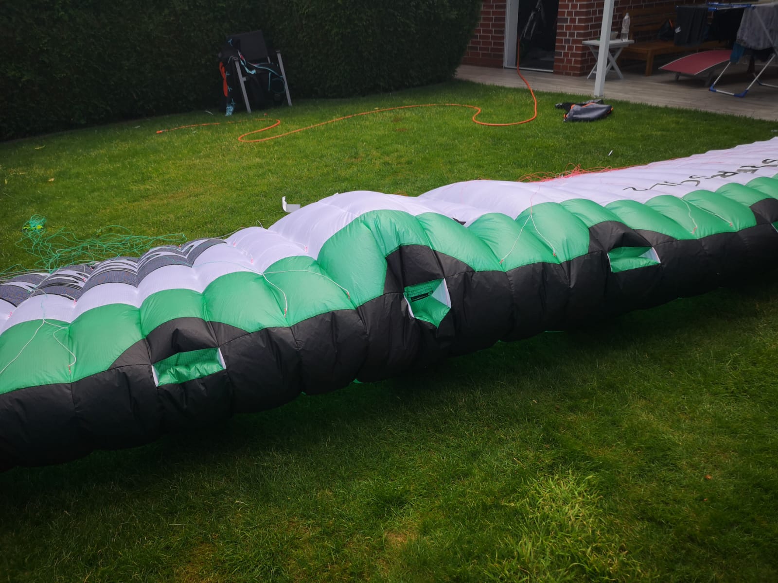 (Ich hatte selber mal eine kleine 2-Leiner-Matte in der Hand, die an und für sich einwandfrei flog, aber in der Luft keine symmetrische Form hatte. Als ich in die Kammern reingeschaut habe, war zu sehen, dass 2 Mittelstege gerissen waren. Wundert mich heute noch, dass die Matte in der Luft dennoch so gut unterwegs war.)