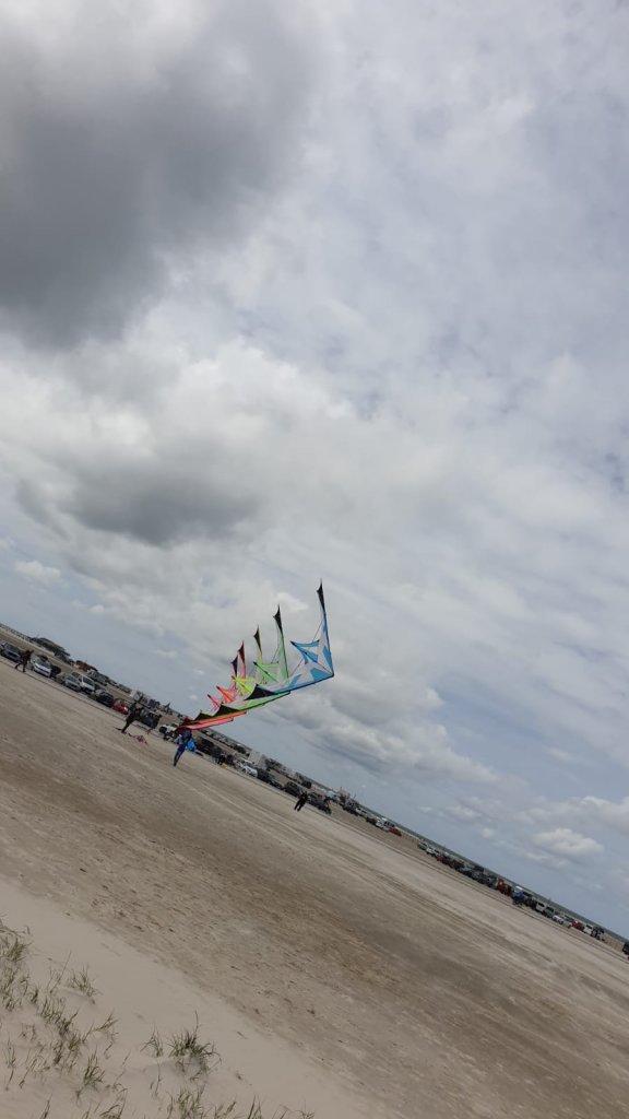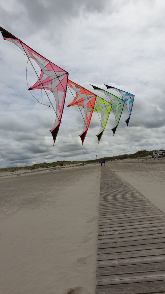 In dem Moment war mir klar das wir genau das Gegenteil machen müssen. Wie ein Tornado,im zentrum ruhig und außen Unruhig. Bedeutet, den 2 Drachen kurz hinterm 1ten keine Wirbel. weit hinterm ersten voll im Wirbel. Meine Meinung. Ich habe die Koppelleinen auf 63 cm gekürzt. Also ca die hälfte der Eigendlichen länge. Bingo