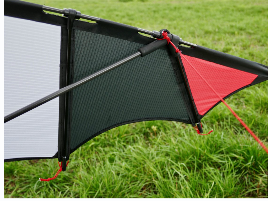 An den Spitzen kann man gut das umgeschlagene Klettband sehen, wie beim Kielstab üblich.Neuerdings wird offenbar auch der 1.9er mit dieser Lösung gebaut. Ob Standard oder nur auf Nachfrage weiß ich nicht.