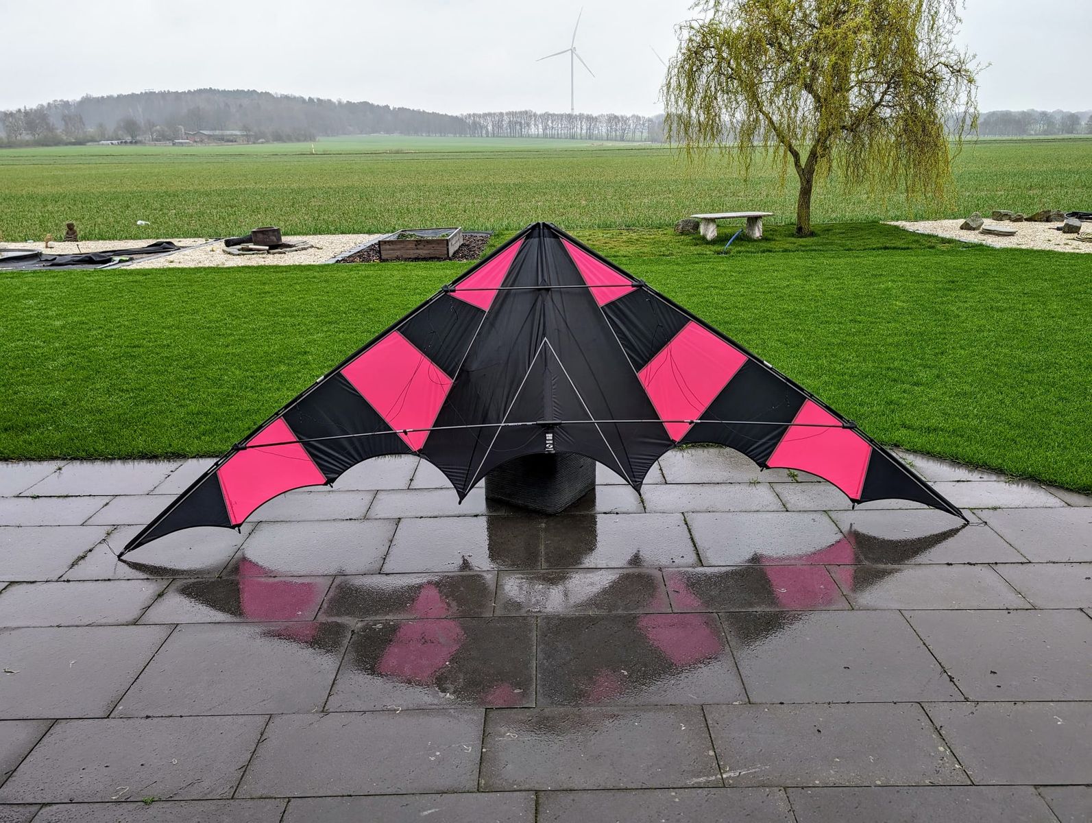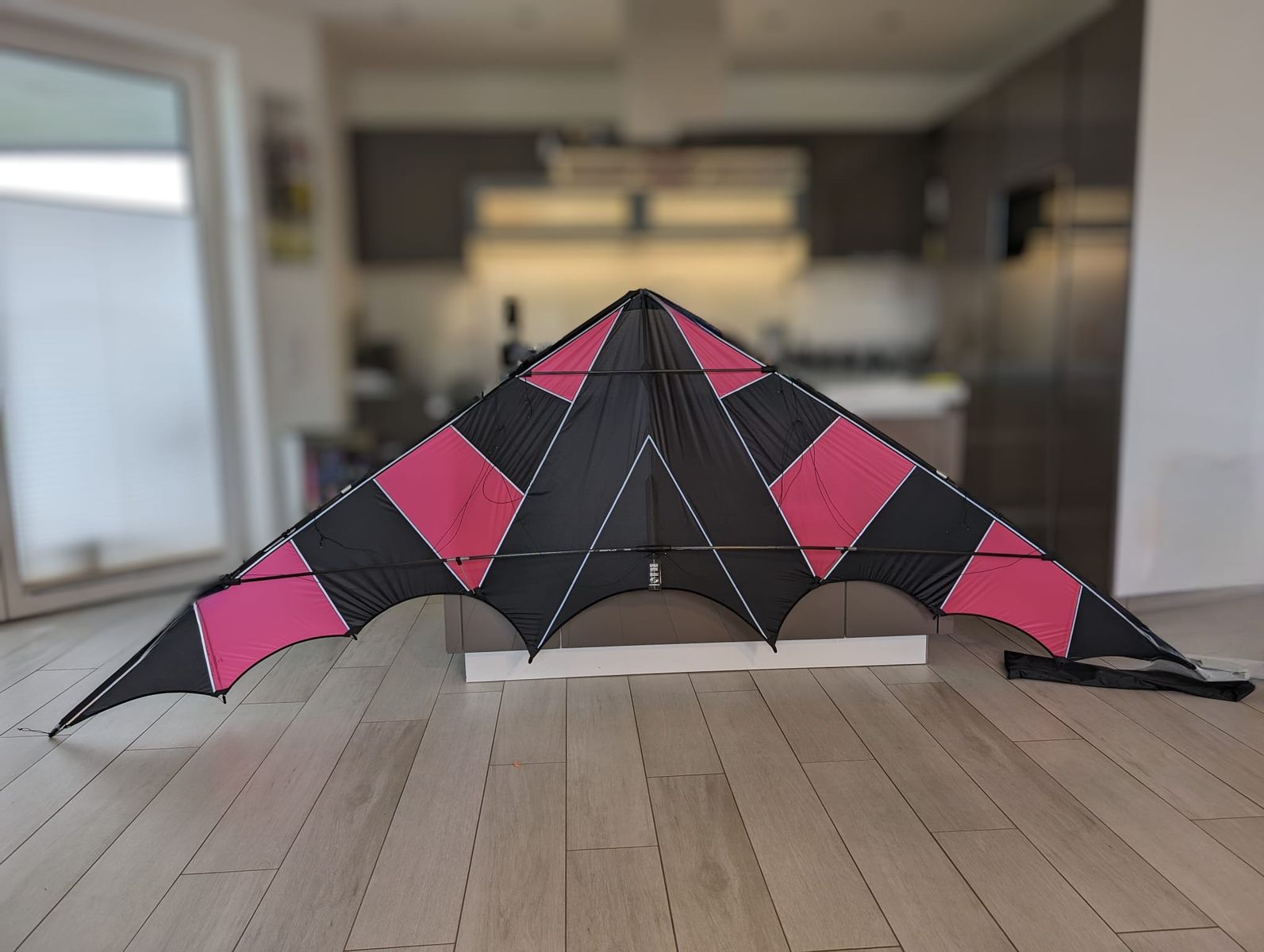Ansonsten fliegt er sich, wie immer bei Spacekites üblich, sehr präzise und wie auf Schienen. Kein Brummen, nur ein lautes Rauschen. Für seine Größe ist er wirklich flott unterwegs.