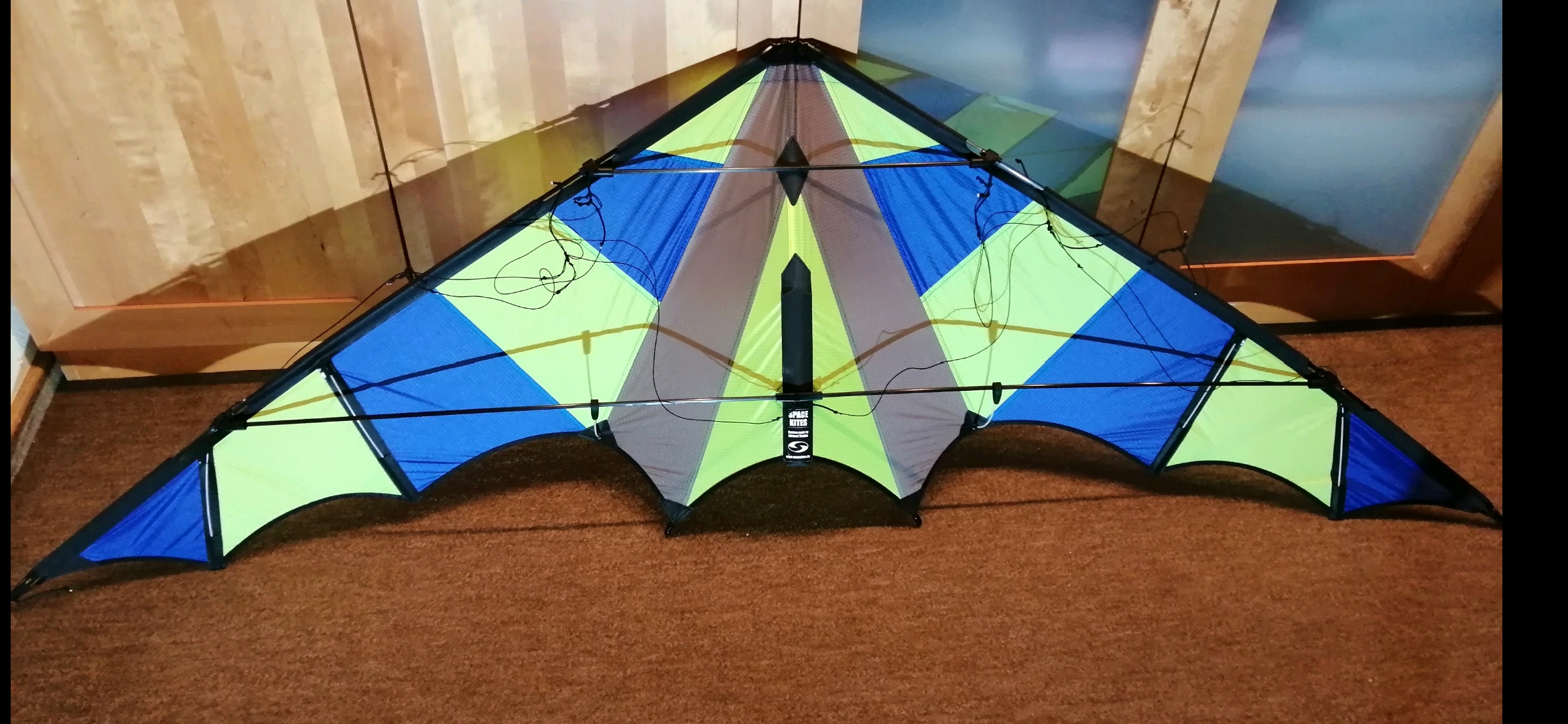 Wie auch der kleine Loops ohne nennenswerten Höhen Verlust. Groundpasses kein Problem. Sehr präzise und fix unterwegs für einen Kite seiner grösse.So nun zu den Daten es ist ein Gerüst aus 8 mm Gestänge und ein 10 mm Kreuz verbaut wobei die 8 mm Spreize im Bereich des Kreuzes ca 25.cm aufgefüttert ist. Natürlich möchte ich euch die Fotos nicht vorenthalten die ich von Michaels Prototypen bekommen habe in der einfarbigen Kombi.