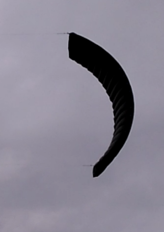 Erst mal in der Luft sehr stabil. Im Windloch segelt die foil einfach zurück, bis wieder Wind anliegt.