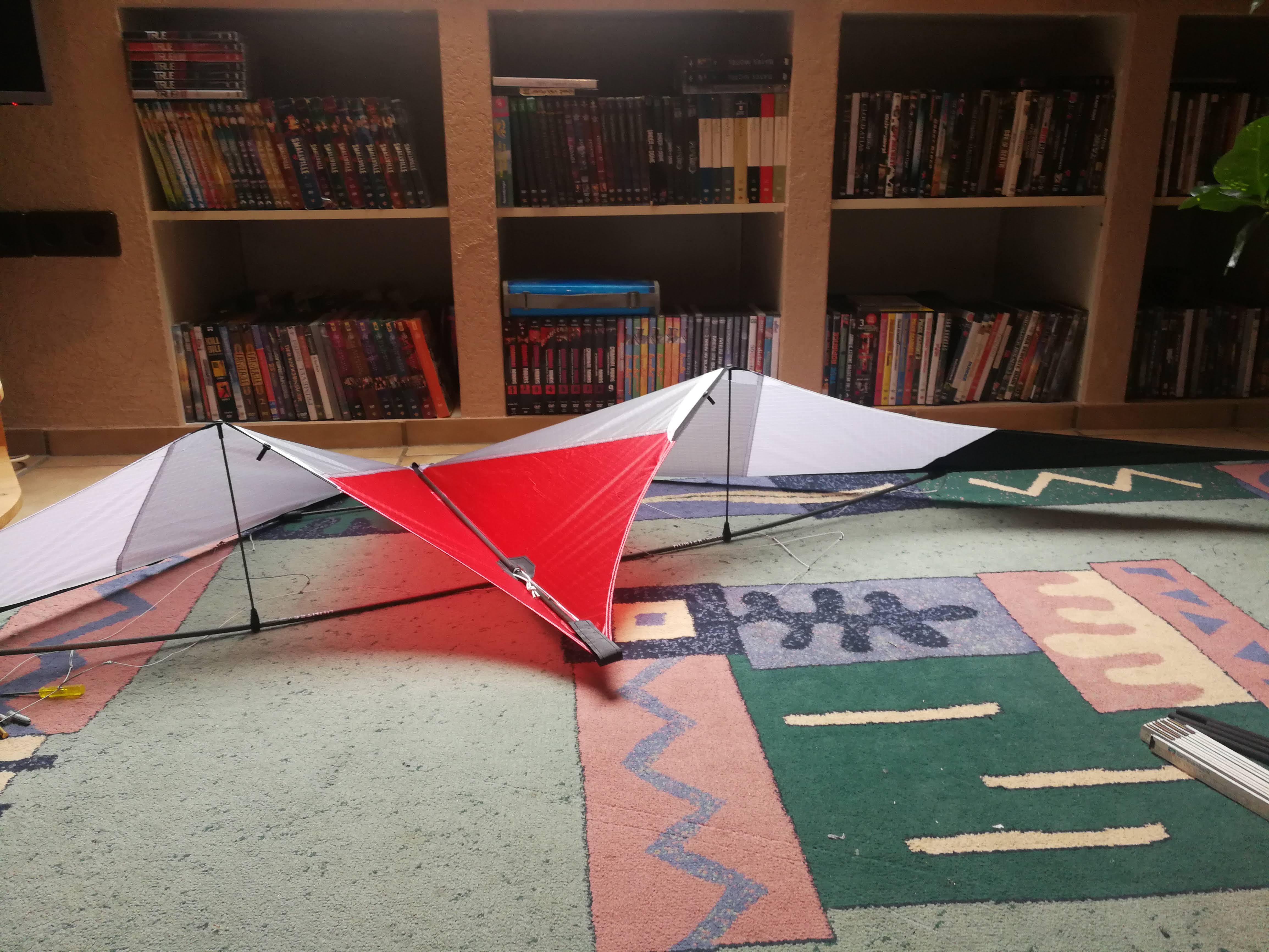 Also ich bin von diesem Kite begeistert. bin gerade dabei noch einen Standart zu nähen,ebenfalls mit Sphere Hunter-Pfeilschäften. Spinne 400 und 500, und das Segel aus Icarex.