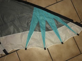 habe von einem Drachenfreund dieses Segel geschenkt bekommen. Das Tuch hat einen Riss. Wollte eine Applikation drauf machen.