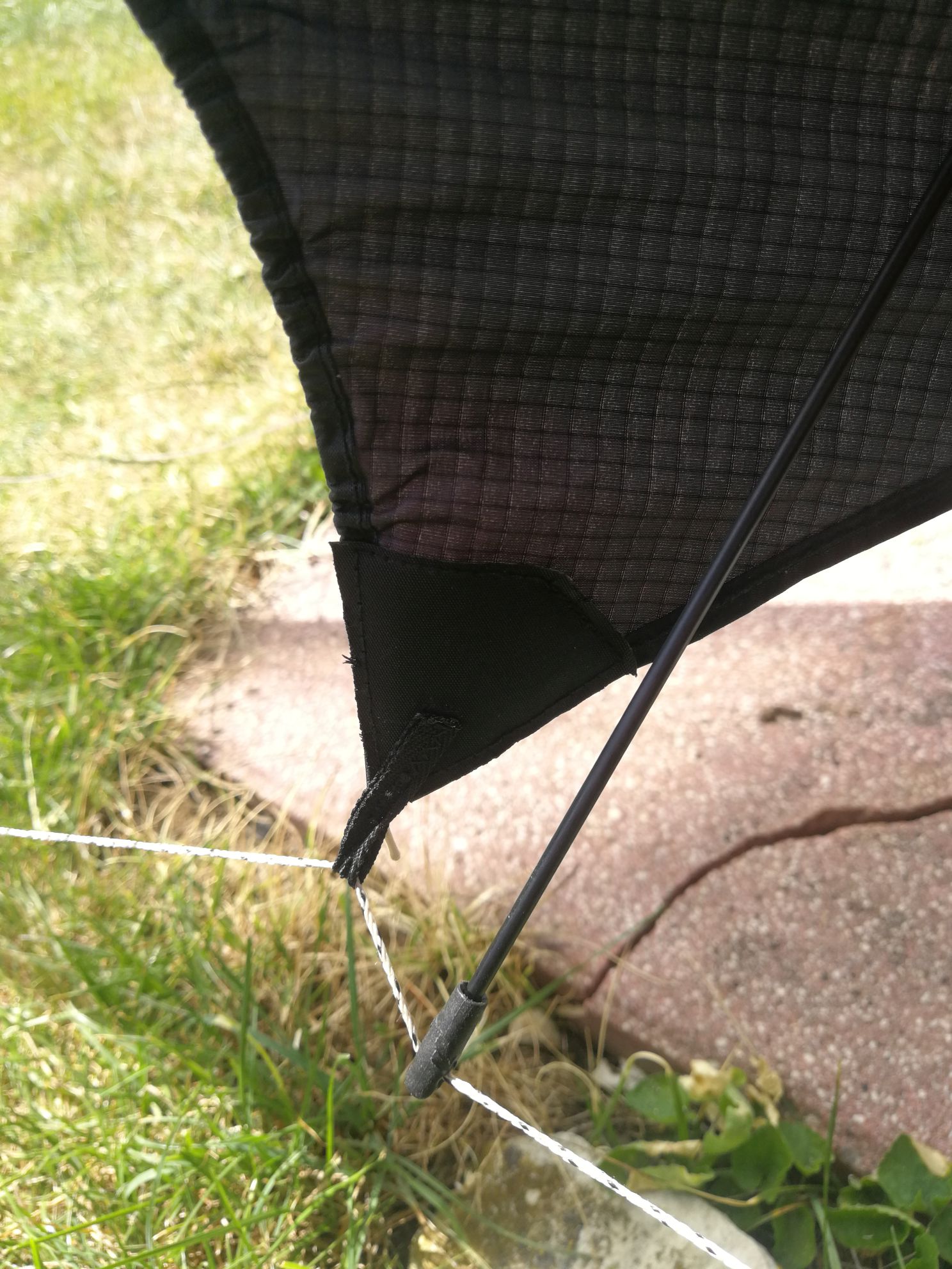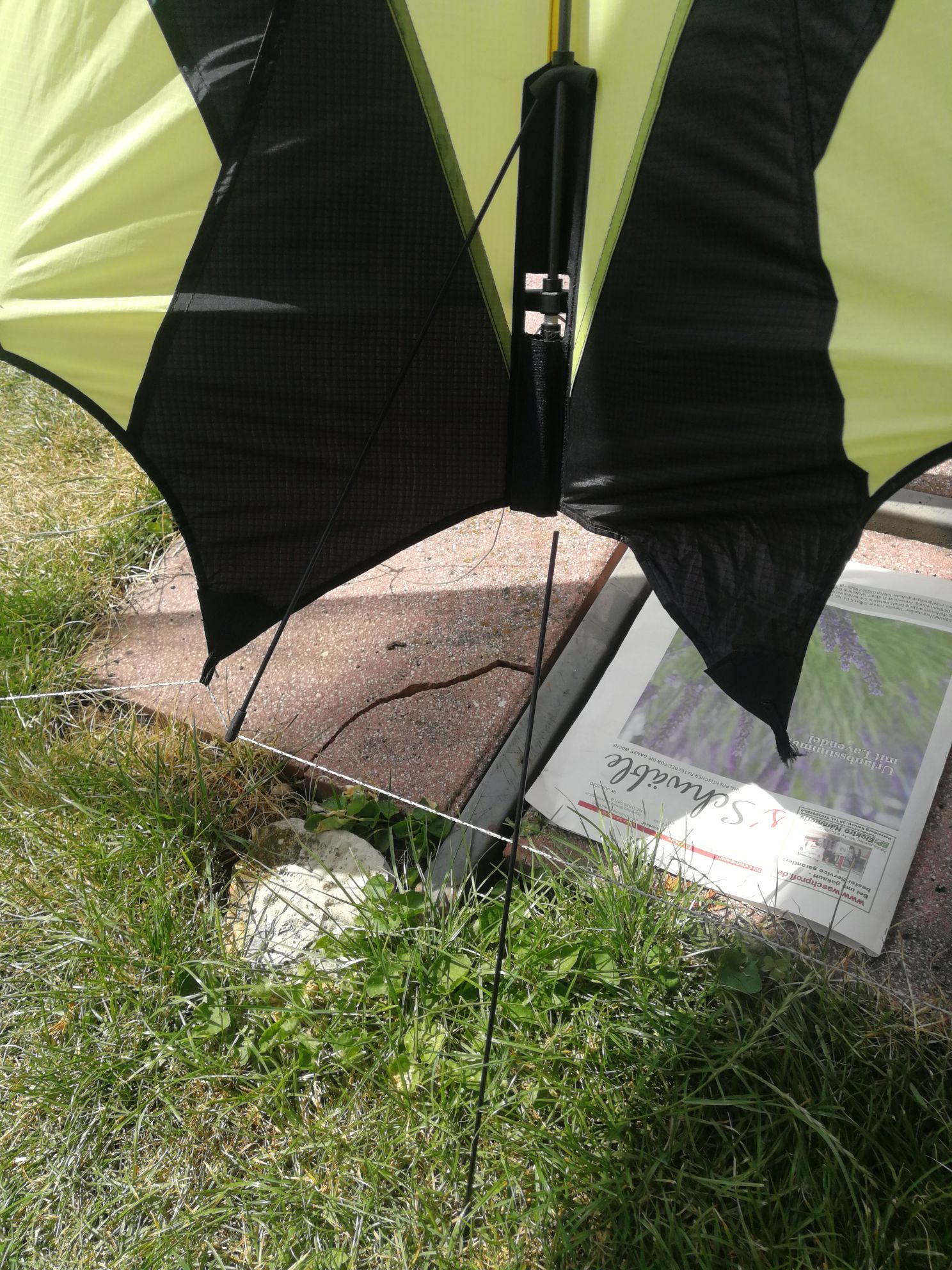 1. ja, den Schwalbenschwanz musst du hinten mit den beiden dünnen Stäben noch abspannen. Die gehören nicht auf die Schnur, sondern in die Schlaufe mit rein.