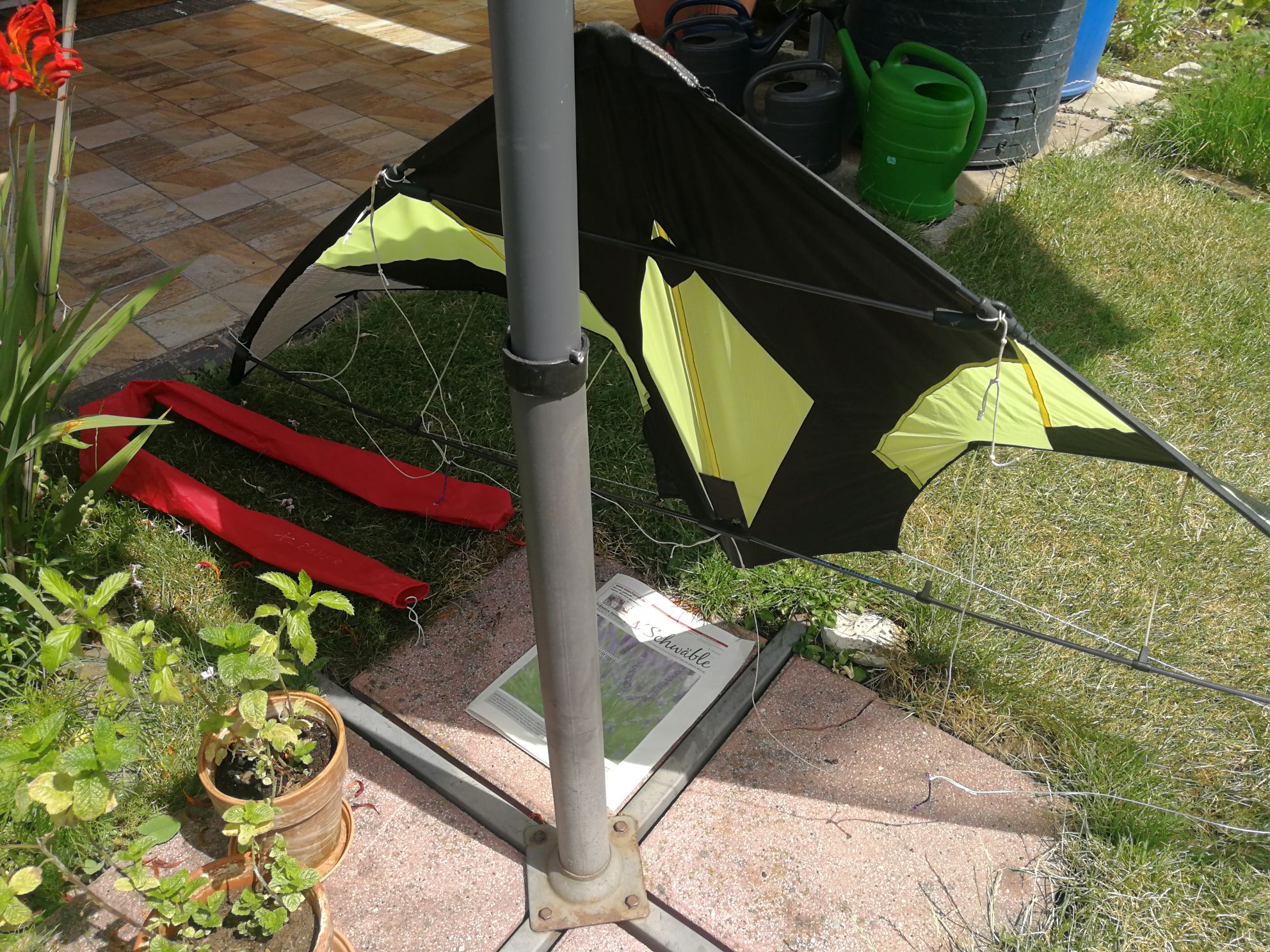 Nach mehreren Jahren Pause habe ich heute meinen Lenkdrachen zusammenbauen wollen. Wir fahren demnächst in Urlaub und ich wollte nuin wieder ins "Geschäft" einsteigen.