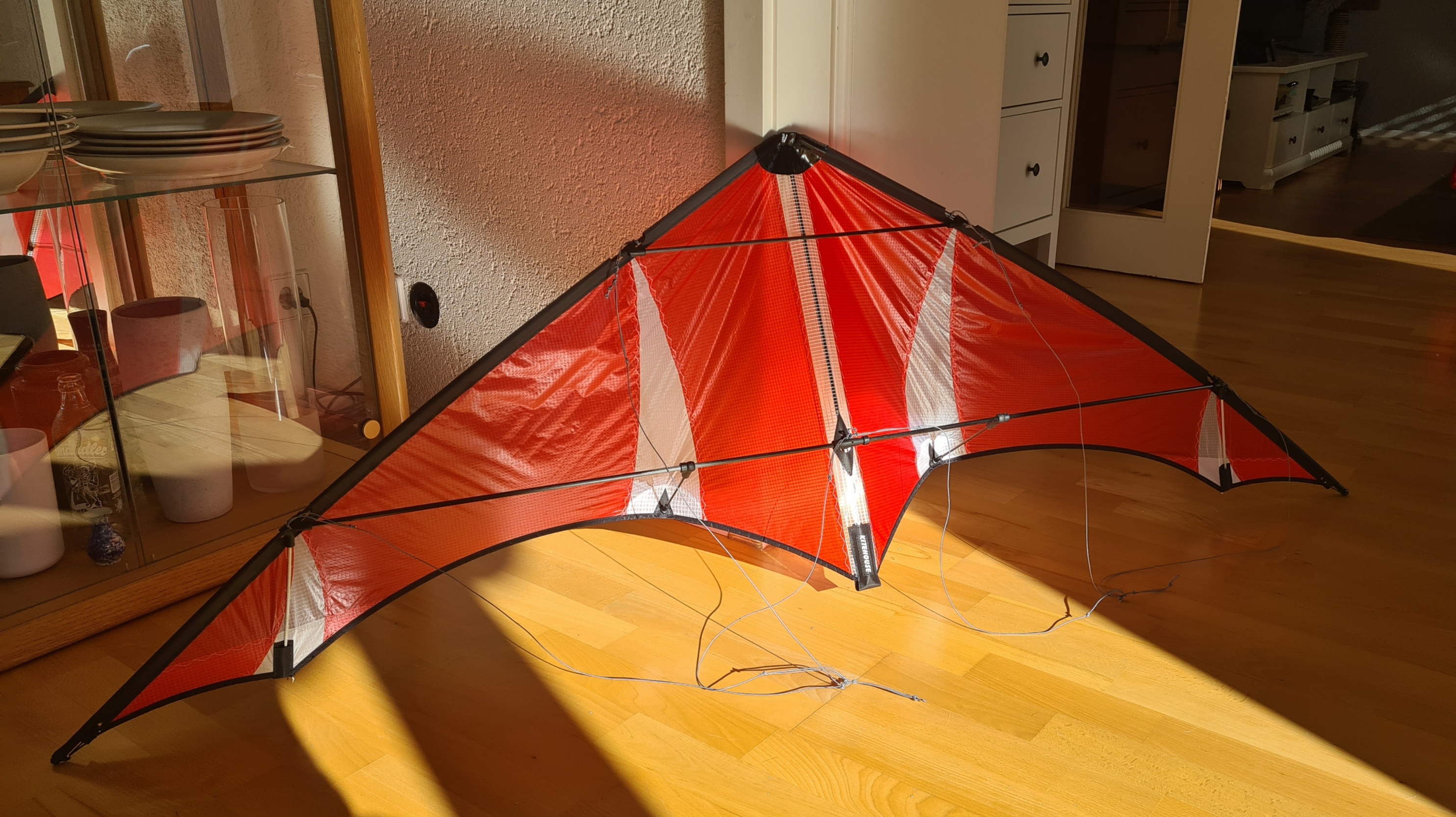 du scheinst die beiden Farbvarianten ja bereits vor Ort gesehen zu haben. Das Rot wirkt auf den Fotos eher etwas "belegt", also nicht so leuchtend, das Blau beschreibst du als schön kräftig. Auf meinem Bildschirm erscheint das Blau im Vergleich zum Rot auch etwas kräftiger + "leuchtender". Kannst du evtl. meinen Eindruck bestätigen oder wirken die Farben am aufgebauten Drachen anders?