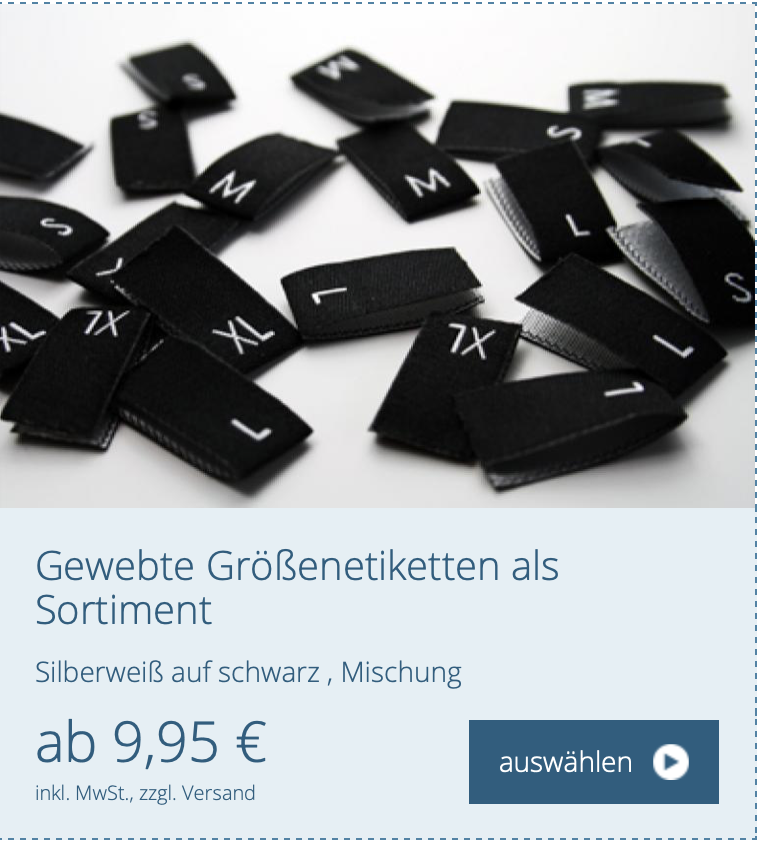 Dann bin ich auf diese Sortiment von Größenetiketten für 10,00 EUR gestossen. Das passt!