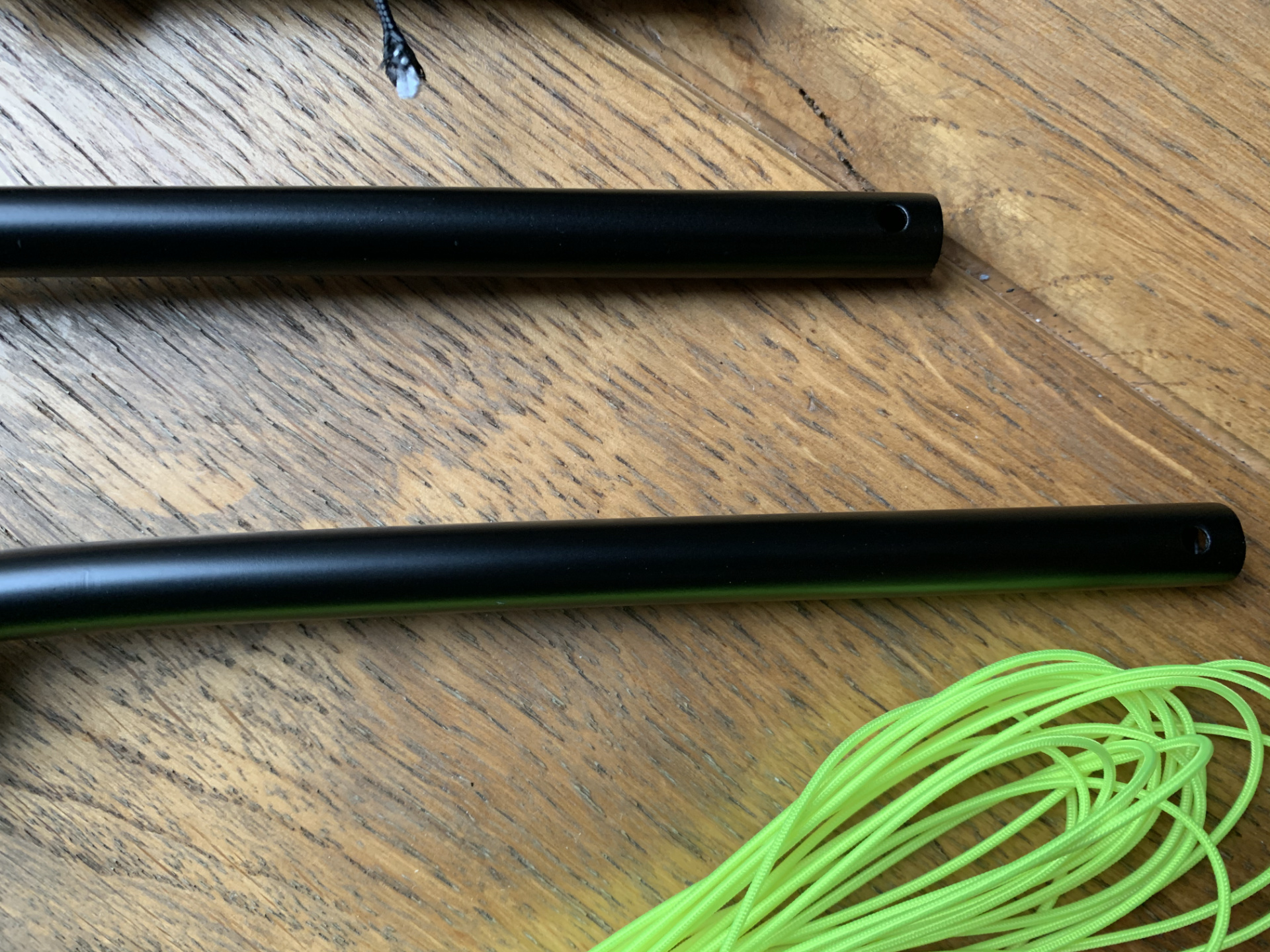 • Ich habe hier ein paar Rev Handles liegen, die ich gerne veredeln möchte. Der Umbau zu No Snag ist bereits erfolgt (Dreieck und Gummikappe ab, Bohrungen entgratet und Knotenleiter vorbereitet).