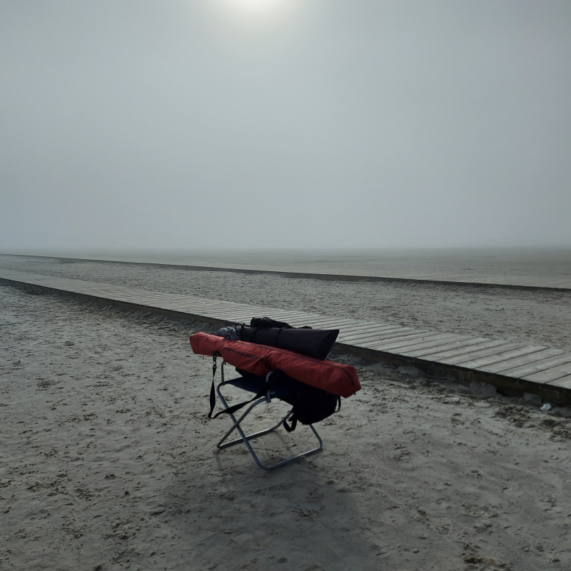 Carlo hatte eindeutig das bessere Wetter. Es war in St. Peter Ording kühl und nebelig. Die Segel waren in der Luft recht feucht.