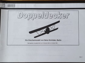 Ich habe im Fundus eines Nachlasses einen Stapel Bauanleitungen für einen Doppeldecker Drachen gefunden. 14 Seiten DIN A4 (7 Blatt doppelseitig gedruckt).