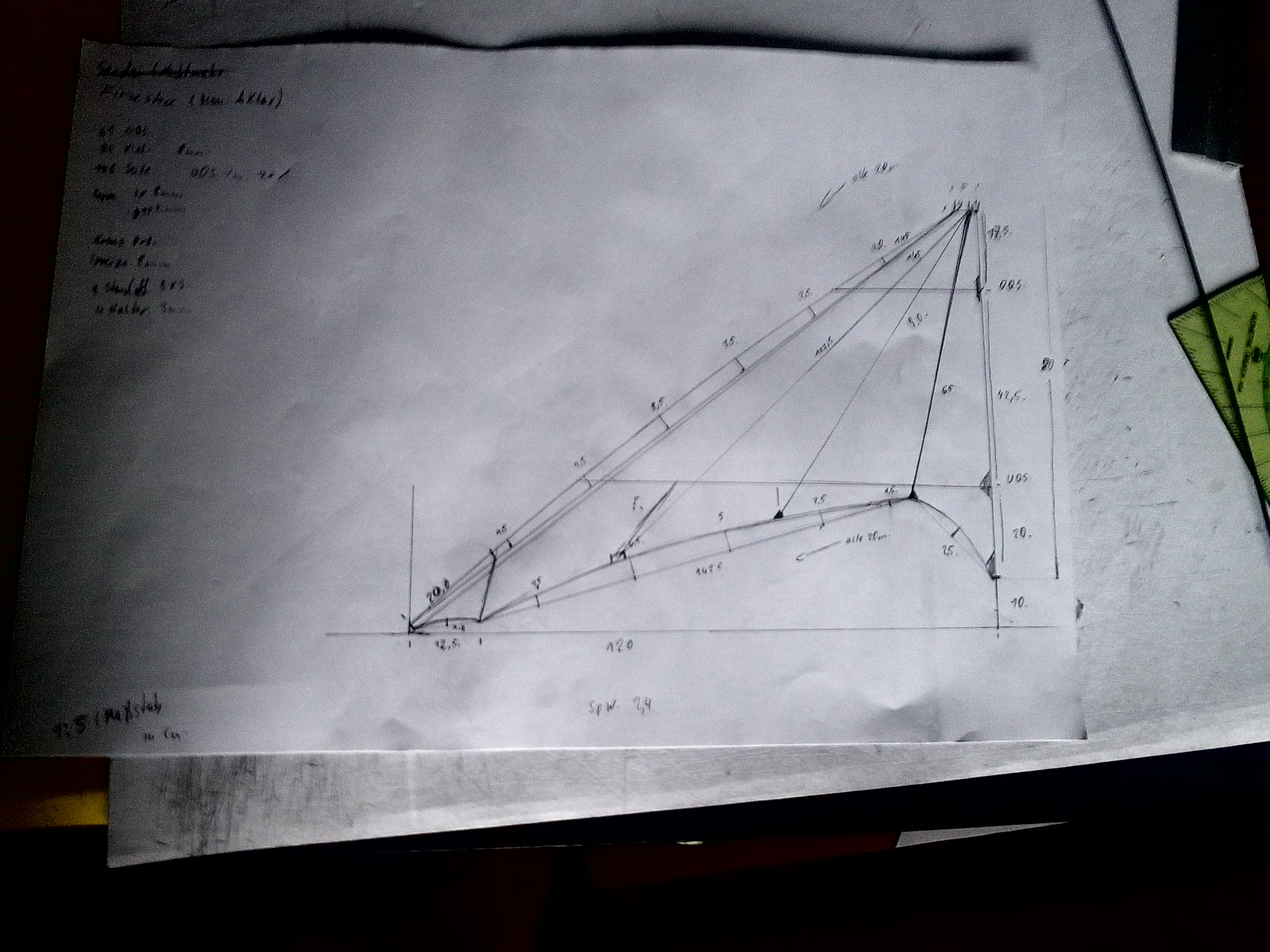 Da ich mittlerweile einige Drachen gebaut habe, bisher nach vorhandenen Plänen bzw. skaliert habe.