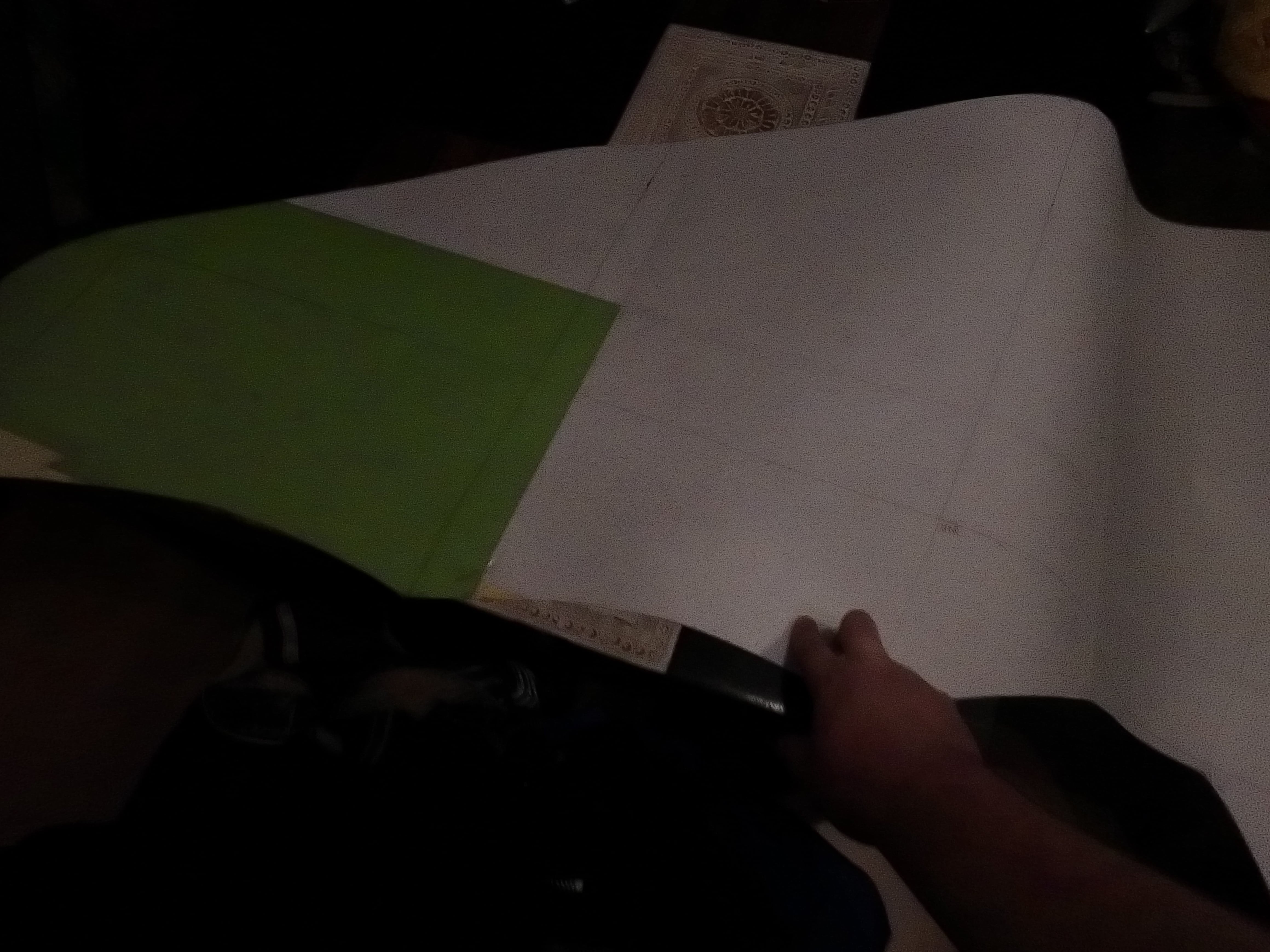 Dann ging es darum die Farbkombination und Paneelaufteilung festzulegen, diese wurden direkt auf die Schablonen eingezeichnet.
