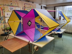 Ich wollte ursprünglich einen ganz klassischen Kastendrachen bauen - auch mit klassischen Materialien. Bei der Suche nach einem Bauplan stieß ich auf den Calomil von Christian Becot. Und diese Form fand ich so klasse. Dass ich diesen dann gebaut habe.